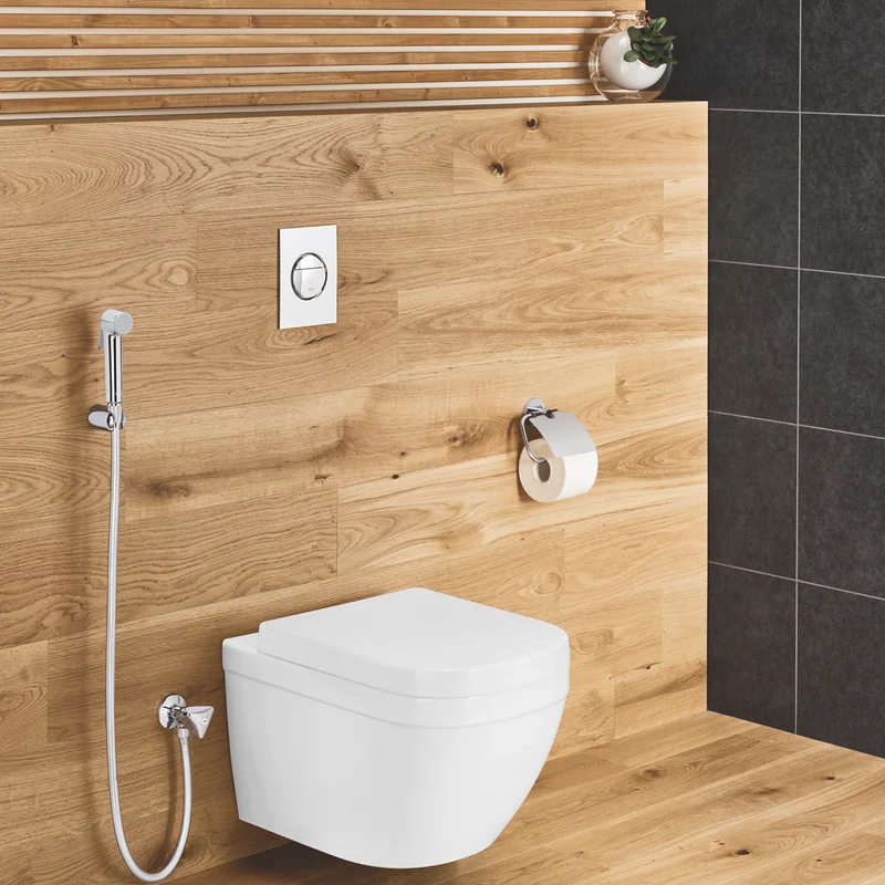 Лійка для гігієнічного душу (27512001), кронштейн для гігієнічного душу (28605000), шлангове приєднання з вентилем (22958000), душовий шланг (26335000), кріплення.