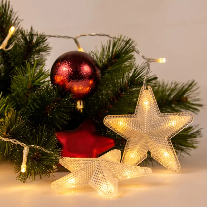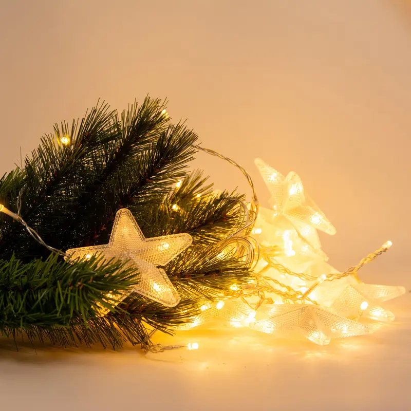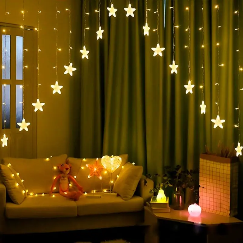 Гірлянда Chomik "Штора зірки" — це поєднання класичної форми світлової завіси з декоративними елементами у вигляді зірок, які надають оформленню святкового та романтичного характеру. Її загальна довжина становить 6 метрів, з яких 3 м — активна частина з лампочками, а ще 3 м — з'єднувальний дріт, що значно полегшує монтаж. 136 LED-ламп теплого білого світіння розташовані на сріблястому мідному дроті, що виглядає акуратно та сучасно. Завдяки живленню від мережі та класу захисту IP44, гірлянда підходить як для інтер’єру, так і для зовнішнього декору під навісом.Особливості• Декоративні зірки додають композиції оригінальності, перетворюючи стандартну гірлянду на стильний елемент декору.• Світлодіоди з теплим білим відтінком створюють м’яке світіння, яке сприяє затишній атмосфері вдома або на святкових заходах.• Крок між звисаючими проводами — 10 см, що дозволяє досягти рівномірного та щільного світлового покриття.• Живлення від мережі 230V забезпечує стабільну роботу без необхідності заміни батарейок.• Клас захисту IP44 дозволяє використовувати гірлянду у вологому середовищі — наприклад, на балконах або верандах під дахом.Варіанти використання• Ідеальна для оформлення вікон, карнизів або скляних перегородок, де зірки виглядають особливо ефектно на тлі світла.• Підходить для декорування спальні, дитячої кімнати або романтичної зони, створюючи м’яке підсвічування без різких тіней.• Може використовуватись у ресторанах, кав’ярнях або студіях як частина сезонного чи тематичного декору.• Добре поєднується з легкими текстильними фонами або прозорими шторами, підкреслюючи об’єм композиції.• Використовується для створення затишної атмосфери на святкових заходах, зокрема весіллях, днях народження або новорічних вечірках.* Реальний колір товару може дещо відрізнятись від зразків, представлених на сайті, залежно від технічних налаштувань Вашого екрану, а також, враховуючи особливості матеріалу, відтінок товару може змінюватись залежно від освітлення.