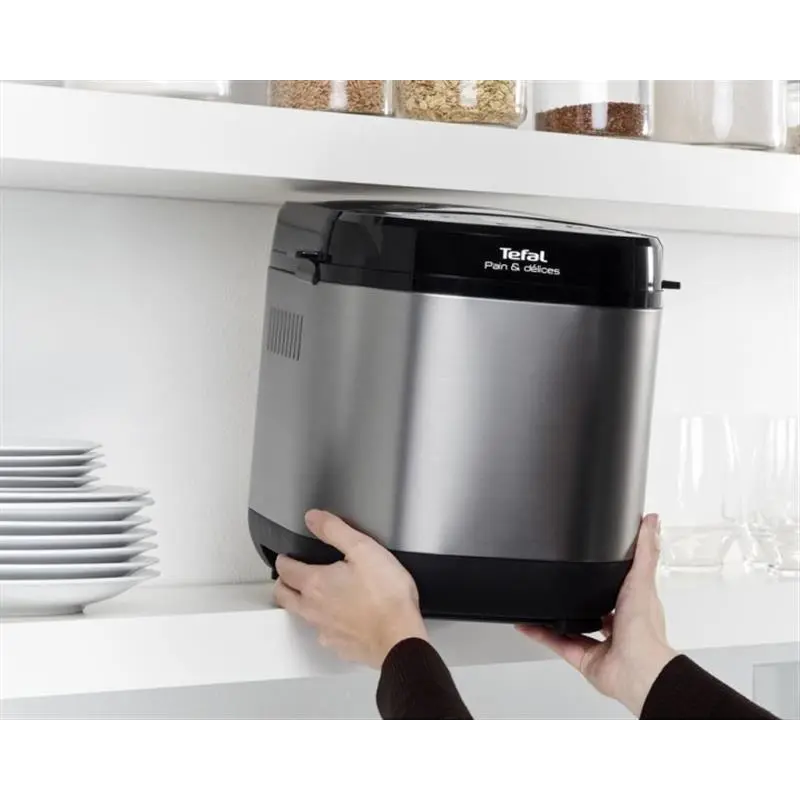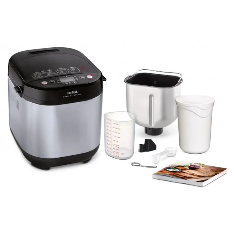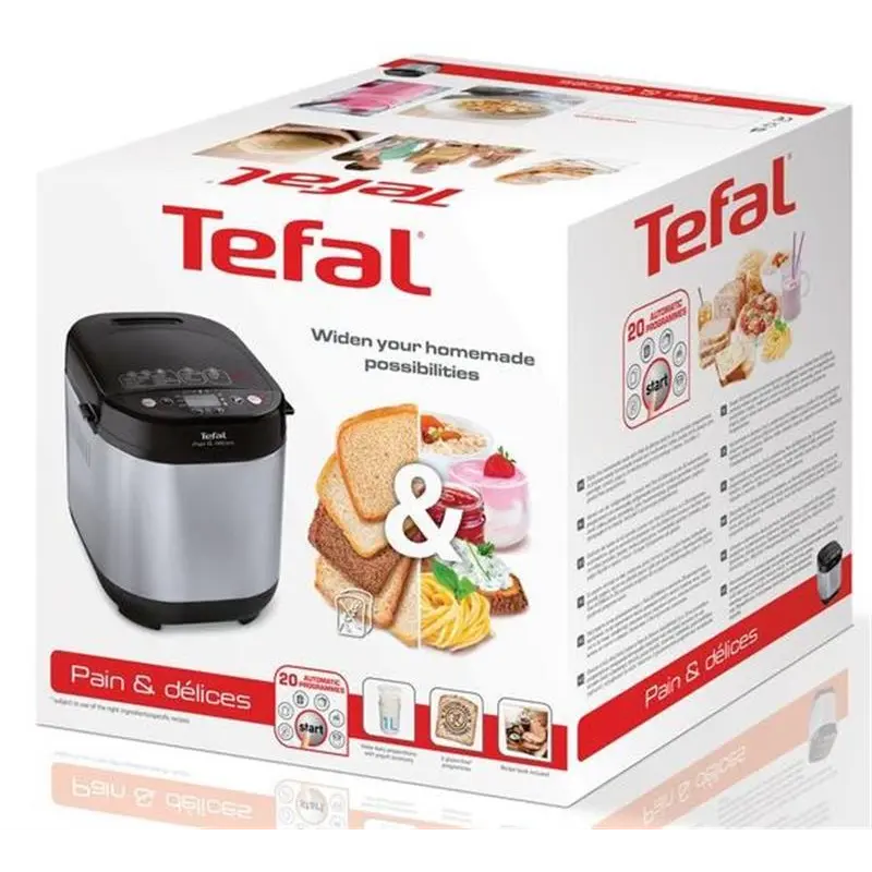Програми роботи. Хлібопічка Tefal Pain et Delice PF240E38 пропонує 20 автоматичних програм. Серед них програм для хлібної випічки і додаткові програми, що дають змогу готувати в цьому апараті ще й джем, каші, крупи. Крім базових і очікуваних сортів хліба (класичний, житній, французький) є режим для хліба без глютену, режим швидкої випічки. Особливо порадує господинь режим замісу дріжджового тіста, який дасть змогу приготувати пельмені, піцу, пиріжки з меншими зусиллями. Модель дає змогу випікати хлібобулочні вироби вагою 500, 750 і 1000 грамів. Присутні три ступені готовності - від легкого до сильного продрум'янювання. Відкладений старт і підігрів. Функція відкладеного старту дає змогу відтермінувати запуск випічки на термін до 15 годин. Функція підігріву готового продукту запускається автоматично після закінчення приготування. Тривалість режиму підігріву 1 година. Управління. Панель керування складається з монохромного РК-дисплея, кнопок керування та переліку з 20 програм. Усі кнопки і програми позначені графічно, в доступній формі, завдяки чому керування не викликає труднощів.