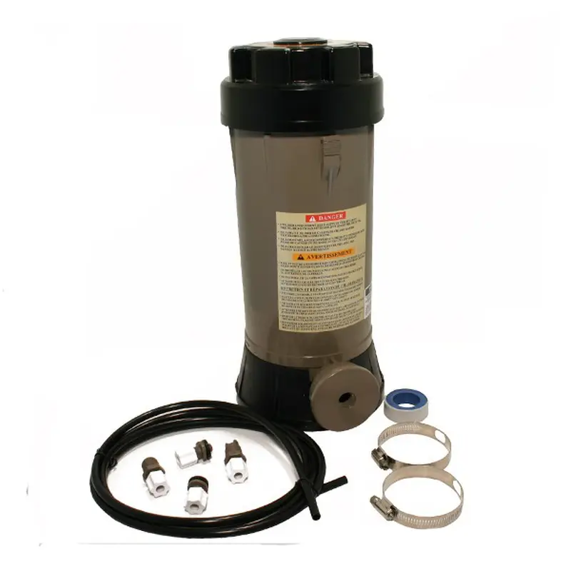 Хлоратор-напівавтомат Hayward CL0200 використовується для дозування дезінфектанту (хлору або брому), що подається у воду басейну. Установка включається в лінію системи циркуляції басейну через байпас. Сухий гранульований препарат засипається у відсік пристрою. Вода, потрапляючи в дифузор, утворює розчин, який надходить у воду. Модель обладнана регулятором подачі хлорного розчину. Завантаження гранул: 4 кгДля басейнів: до 150 м³З’єднання: байпас