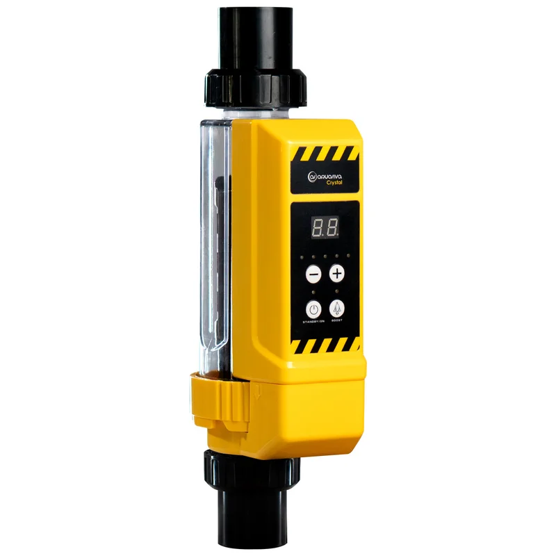 Хлоргенератор Aquaviva Crystal 12 г/год - це чудовий варіант знезаражувального пристрою для басейнів об'ємом до 60 м³. За допомогою 2-х кнопок ви можете відрегулювати вихід хлору в діапазоні від 20% до 100%. Автоматична сигналізація несправності з кодом помилки оповістить вас про аварійну ситуацію. Вбудований датчик температури автоматично відключає хлоратор, якщо температура досягне критично низьких або критично високих показників. Сучасний мікропроцесор забезпечує високе енергозбереження і безпеку методу дезинфекції басейнів малого і середнього розмірів. Функція самоочищення шляхом автоматичної зміни полярності запобігає накопиченню кальцію і, отже, збільшує термін служби ячейки. Встановлені у ячейку датчики гарантують, що потік води достатній для безпечного утворення хлору. Система пам'яті - коли хлоратор перезапускається, він може автоматично ініціювати останній робочий статус. Максимальна продуктивність Cl: 12 г/год Рівень вмісту солі, мінімум: 2.7-3.2 г/лПервинна витрата солі: 3.5 - 4 г/л