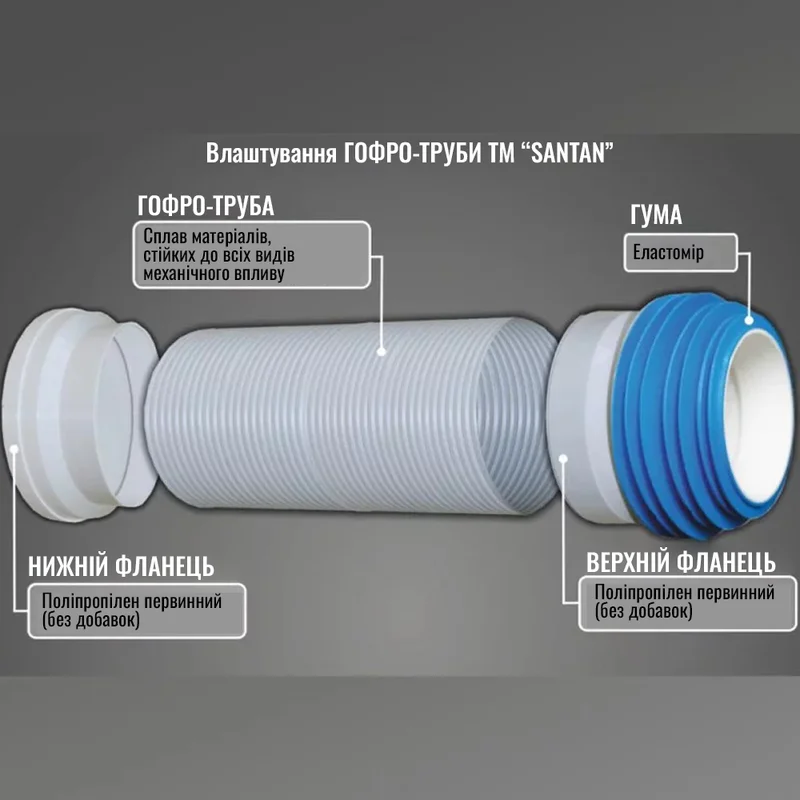 - Для з'єднання елементів використовується молекулярний клей, який стає єдиним з фланцем і гофро-трубою в процесі розплаву.