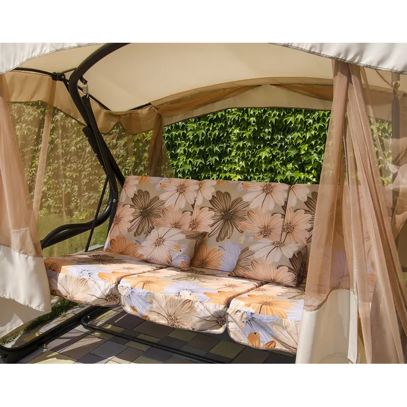 Головне завдання та функція садових гойдалок – це створення затишного куточка для відпочинку на природі. Садові гойдалки від ТМ Вітан ідеально підійдуть для Вас. Каркас даної моделі виконаний із сталевих труб кількох діаметрів, основним з яких є труба діаметром 51мм. Труби каркасу з полімерним покриттям для стійкості від корозії, а також для стильного зовнішнього вигляду. Ця гойдалка повністю розбирається на окремі деталі, що дуже зручно для зберігання та транспортування. Для складання є детальна інструкція, де схематично пояснюється, як зібрати або розібрати гойдалки. Тент даху із спеціальної вологостійкої матерії, сидіння виготовлене із пружинного блоку та сталевого дроту. На сидінні м'який матрац із тканини з поролоном та синтепоном усередині. На гойдалці можуть розміститися 4-ро дорослих людей, а якщо з маленькими дітками то й усі 6-ро! Максимально допустиме навантаження до 300кг. Широке сидіння розміром 1710х535мм дозволить зручно розташуватися на гойдалці та насолодитися відпочинком. Ми переконані, що продукція від ТМ Вітан викликає лише позитивні емоції. Якість та надійність від українського виробника гарантовані.