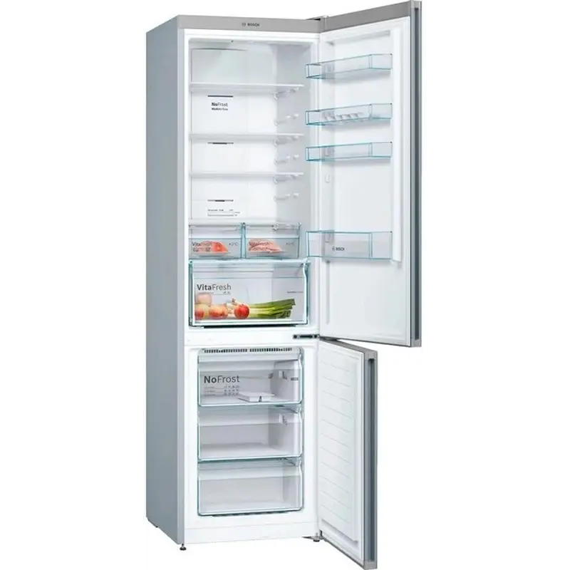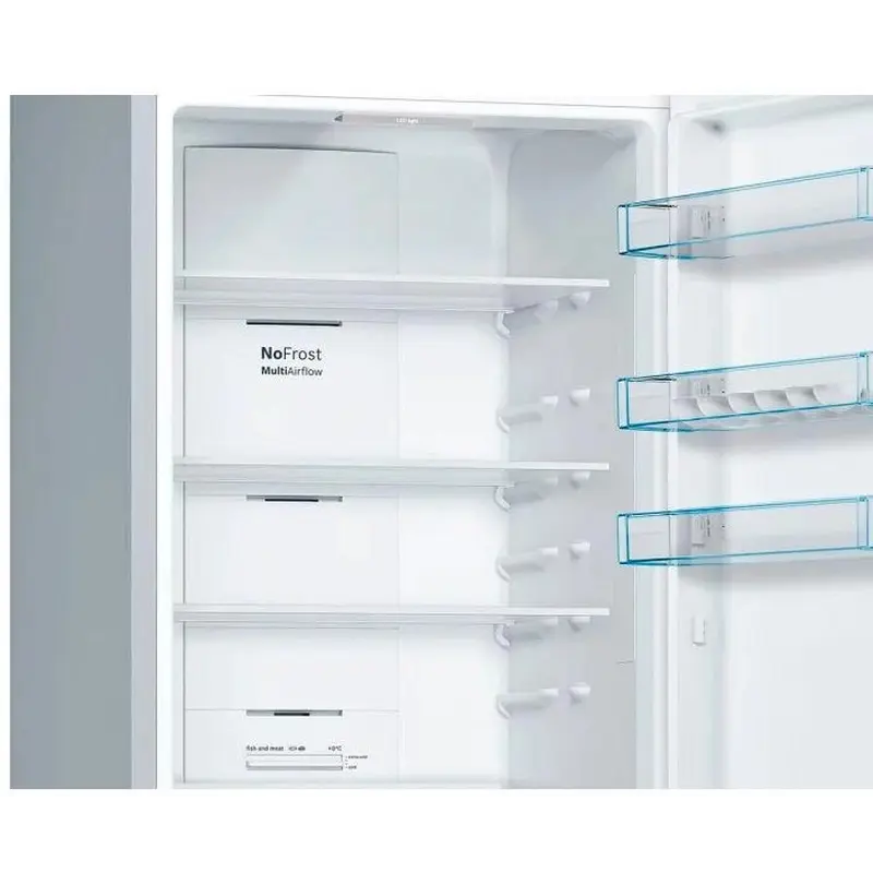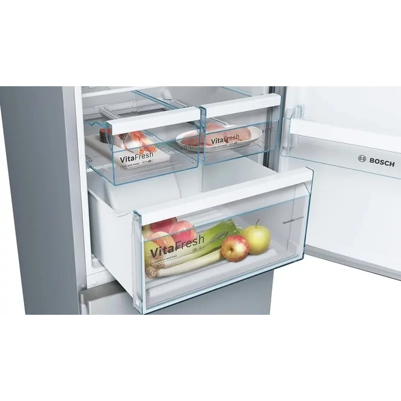 Переваги та особливості VitaFresh: довше зберігає свіжу їжу. Здоровий спосіб життя ніколи не був таким простим. Контейнер VitaFresh створює ідеальні умови зберігання для вашої їжі завдяки надзвичайно низьким температурам та регульованому контролю вологості. Умови вологості в ящику можна регулювати, тому ваші фрукти та овочі довше залишаться свіжими. Світлодіодні світильники в холодильнику додають нову освітлювальну концепцію, гарантуючи рівномірний огляд без відблисків. Світлодіодні лампи споживають менше електроенергії, ніж звичайні, та служать протягом усього терміну служби приладу. Більше ніколи не розморожуйте холодильник NoFrost: забудьте про розморожування завдяки ідеальному захисту від утворення льоду - це економить час і зусилля. Висувна полиця для повного доступу до продуктів. Безрамні скляні полиці особливо прості у використанні завдяки плавному висувному механізму. FreshSense: клімат-контроль Вашого холодильника. Постійна температура в камері холодильника – вирішальний фактор у досягненні тривалого терміну зберігання продуктів. Датчики FreshSense постійно контролюють та підтримують температуру в холодильному та морозильному відділеннях. Таким чином, продукти будуть знаходитися в ідеальному стані, коли Ви забажаете їх приготувати. Холодильник класу енергоефективності A++ споживає на 40% менше електроенергії, ніж прилад класу A. Захист заморожених продуктів від розморожування. Додавання нових продуктів до морозильної камери підвищує внутрішню температуру, що може призвести до розморожування та втрати аромату заморожених інгредієнтів. Функція SuperFreezing забезпечує швидке заморожування нових продуктів та запобігає розморожуванню вмісту всередині морозильної камери. Прилади з функцією автоматичного заморожування повертаються до нормальної роботи після досягнення необхідної температури, щоб не витрачати зайву енергію. В результаті заморожені продукти зберігають смак. Попереджувальний сигнал зі звуком або світлом, коли дверцята закриті або виникає інша помилка.
