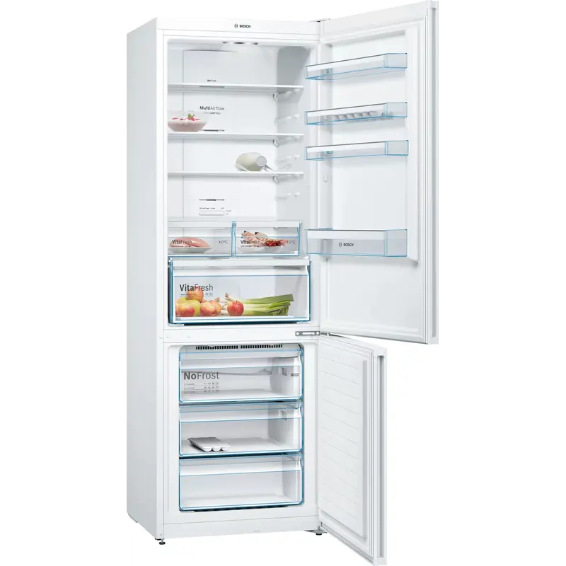 Автоматична установка економічного режиму роботи Після активізації функції Eco mode в холодильнику встановлюється оптимальна температура. У холодильній камері + 6°C і в морозильній -16° С. LED-освітлення: всі продукти в холодильнику виглядають у вигідному світлі LED-освітлення в холодильній камері не тільки представить продукти в іншому світлі , але і знизити енергоспоживання. Multi Air Flow Через вентиляційні отвори холодне повітря з морозильної камери рівномірно розподіляється на всіх рівнях холодильної камери, завдяки цьому температура практично однакова у всій холодильній камері. Super Freezing Щоб запобігти танення заморожених продуктів при завантаженні свіжих, вам потрібно тільки активувати функцію «Швидке заморожування» за 24 години до того, як покласти продукти в морозильний шафа, температура в приладі відразу опуститься до° C, що допоможе запобігти процесу розморожування. Функція вимикається автоматично через максимум 2,5 доби. SuperCooling Ця функція сприяє підтримці обраної температури холодильної камери навіть при закладці великої партії свіжих продуктов.Также, функція швидкого охолодження запобігає нагріванню продуктів, які вже зберігаються в холодильнику при включенні режиму швидкого охолодження. NoFrost Технологія NoFrost забезпечує повну відсутність льоду в морозильній камері. Необхідна в умовах високої вологості повітря. Морозильну камеру не треба розморожувати, тому що в ній не утворюється лід, а заморожені продукти не покриваються інеєм. Проте необхідна гігієнічна чистка раз на півроку. Safety-Glass Ці надзвичайно надійні і зручні полички виконані з міцного і легкого в чищенні скла. Обрамлення з пластика утримує розлиті продукти, гарантуючи ще більше комфорту в експлуатації і чищенні приладу.