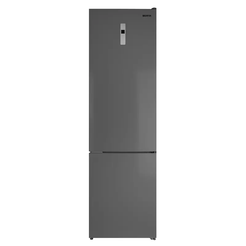 GRIFON – український бренд побутової техніки високої якості, який завжди піклується про комфорт вашого життя. У виробництві ми ретельно контролюємо якість матеріалів для нашої продукції, щоб піклуватися про ваше здоров'я. Техніка GRIFON виготовляється на заводах з багаторічною історією. Весь процес виробництва суворо контролюється, а якість продукції бренду підтверджено сертифікатами Європи та України. ВИРОБНИЦТВО Виробництво ми обираємо за такими критеріями: - висока культура виробництва - використання передових технологій; - лідируючі позиції серед заводів-виробників; - контроль якості на кожному етапі від сировини до готової продукції; - надійність та лояльність до партнерів; - гарантійний супровід. Творці бренду Grifon довели, що побутова техніка для кухні може бути якісною та недорогою. Вони створили холодильник NFND-200X, що не поступається своїми характеристиками моделям преміум-класу. Завдяки компресору PZ75H1X, який також використовується іменитими світовими виробниками, холодильник здатен працювати 10 та більше років без перебоїв. Розмір та зовнішній вигляд. Графітна модель NFND-200X поділена на два відділення — холодильник та морозильна камера. Дверцята мають потаємні ручки, що не виступають за межі корпусу. Зверху на фронтальній частині розміщений сенсорний регулятор режимів роботи та індикатор температур. Ніжки з резиновими насадками не дряпають підлогу та можуть регулюватися за висотою, для максимально стабільного встановлення пристрою. Загальні габарити моделі — 595x635x2010 мм. Оптимальне розташування полиць та ящиків. Верхня частина цього холодильнику Grifon — це відсік для свіжих продуктів місткістю 247 літрів. Має п’ять скляних полиць з можливістю модерації висоти, а також пластиковий ящик для зелені, фруктів та овочів. Дверцята облаштовані зручними навісними нішами — дві великі, та три маленькі, які можна переміщати в різні положення. Тут зберігатимуться яйця, соуси, йогурти, молоко, напої чи варення. Морозильна камера розрахована на 83 літри, де в трьох окремих ящиках можна тривалий час зберігати напівфабрикати, фрукти/овочі, фарш, рибні продукти та інше. Додаткові можливості. За рік холодильник Grifon NFND-200X споживає лише 231 кВт електроенергії та має маркування енергоефективності “А++”. Для повної замороки майже 4 кг продуктів знадобиться доба, при цьому ви майже не почуєте як працює пристрій. Тришарова герметичність дозволяє ефективно зберігати холод всередині.