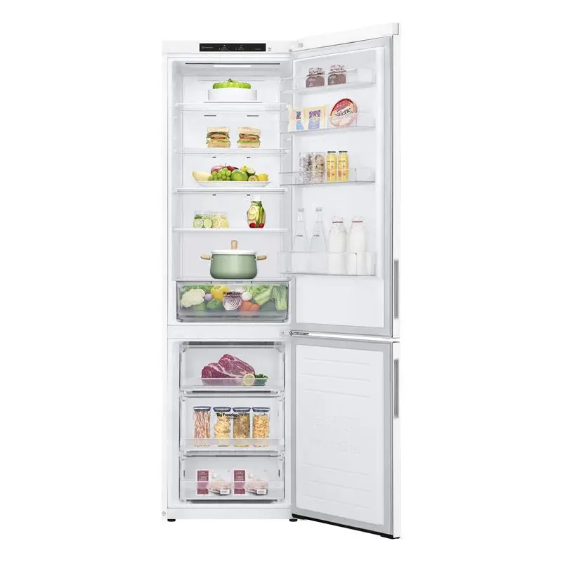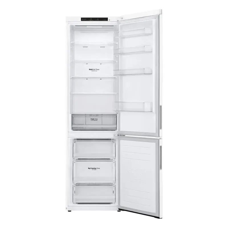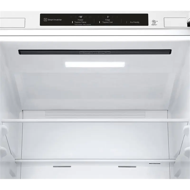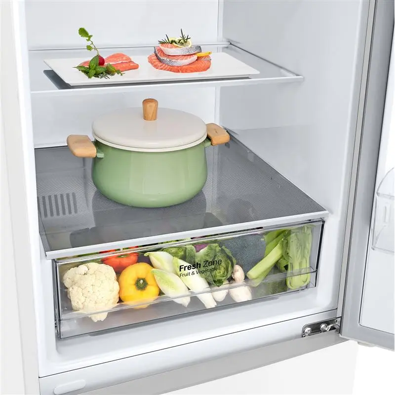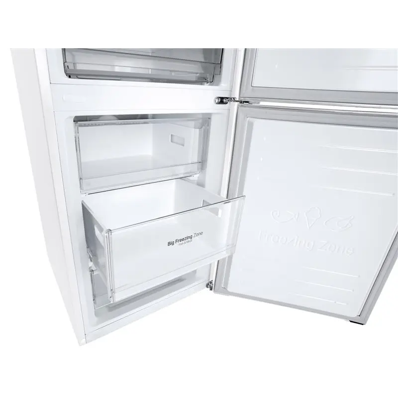 Тиха робота Рівень шуму у нових холодильниках LG DoorCooling+ 36 дБ, що на 25% нижче, ніж у попередніх моделях. Безшумна та надійна робота, щоб нічого не порушувало вашого спокою вдома. Технологія DoorCooling+ Технологія DoorCooling+ довше зберігає свіжість будь-яких продуктів та страв. Smart Inverter компресор Smart Inverter компресор відрізняється економічністю та меншим рівнем шуму в порівнянні з моделями зі звичайним компресором. Клас енергоефективності А++ Холодильник LG з інверторним компресором має рівень енергоефективності А++ та споживає на 32% менше електроенергії. Multi Air Flow Холодне повітря циркулює через усі повітряні клапани та рівномірно охолоджує холодильне відділення. Технологія циркуляції холодного повітря значно покращена порівняно з холодильниками, що працюють за стандартною системою No Frost. Total No Frost Холодильники з технологією LG Total No Frost більше не вимагають розморожування холодильної та морозильної камер. Big Freezing Zone Для ефективного зберігання м’яса та риби в морозильних камерах холодильників LG передбачено окреме відділення. Smart Diagnosis Технологія LG Smart Diagnosis допомагає швидко та правильно виявити проблему в роботі холодильника без необхідності виклику фахівця із сервісного центру додому. Нульовий зазор Удосконалена конструкція дверцят холодильника дозволяє відкривати її під прямим кутом (90°) без виступів за габарити холодильника по ширині і забезпечує легкий доступ до всіх полиць в холодильному та морозильному відділеннях. Навіть на невеликих кухнях двері холодильника не вдаряться об стіни. Технологія контролю напруги Надійна система контролю напруги дозволяє холодильнику LG продовжувати працювати при перепаді напруги від 187 до 253 Вольт. Захист від пікових навантажень до 400 Вольт.