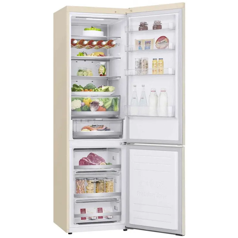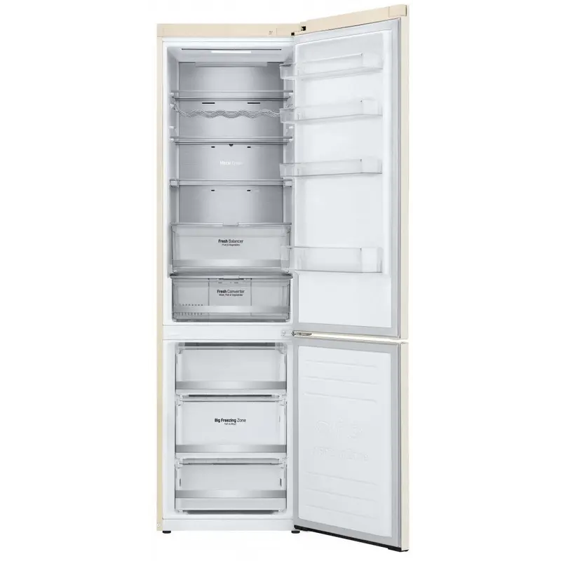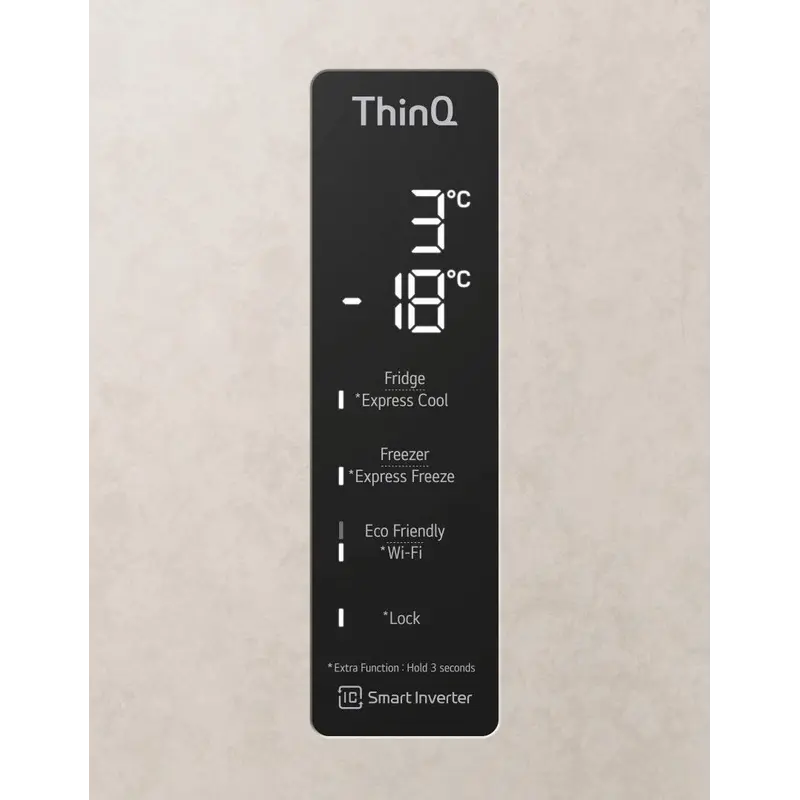 Технологія DoorCooling+ На 32%* більш швидке та рівномірне охолодження в будь-якому відсіку холодильника Вентиляційні отвори, розташовані в передній частині холодильника, допомагають підтримувати температуру на належному рівні, щоб продукти залишалися свіжими. Тиха робота Рівень шуму в нових холодильниках LG DoorCooling+ 36 дБ, що на 25% нижче, ніж в попередніх моделях. Безшумна і надійна робота, щоб нічого не порушувало вашого спокою вдома. Smart Inverter* компресор Smart Inverter компресор відрізняється економічністю і меншим рівнем шуму в порівнянні з моделями зі звичайним компресором.