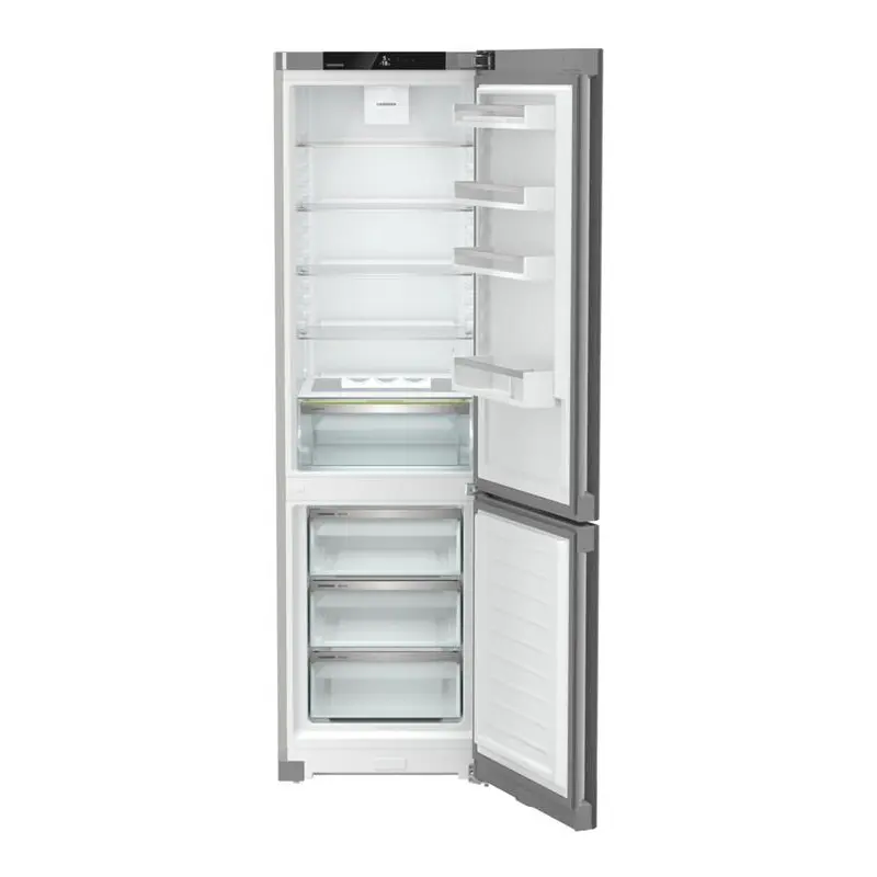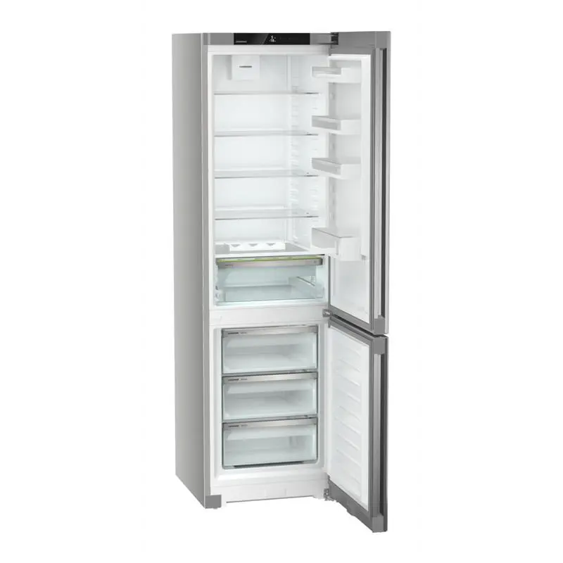 NoFrost "Відкриваючи морозильну камеру ви хочете бачити продукти, а не лід або іній. Технологія NoFrost захищає морозильну камеру від обледеніння, що зазвичай потребує багато енергії й іноді – значних витрат. Завдяки NoFrost вам не доведеться витрачати купу зусиль на розморожування холодильника, тож ви матимете більше часу на інші справи та зможете зекономити гроші. " EasyFresh "Відділення EasyFresh довго зберігатиме свіжість ваших продуктів. Тут забезпечуються оптимальні умови зберігання для незапакованих овочів і фруктів. Кришка щільно прилягає, завдяки чому для продуктів забезпечується належний рівень вологості. Так продукти довше залишаються свіжими. " DuoCooling "Технологія DuoCooling передбачає використання двох окремих контурів, тому повітря з холодильної та морозильної камер не змішується. Завдяки цьому продукти не пересихають і не вбирають сторонні запахи. Це означає, що ви викидатимете й купуватимете менше продуктів і матимете змогу більше заощаджувати й насолоджуватися життям. " Сенсорний дисплей "Це дійсно вражає: завдяки сенсорному дисплею користуватися холодильником Liebherr просто й ви робитимете це інтуїтивно. Усі функції чітко впорядковані. За допомогою дотиків можна легко вибирати функції та перевіряти поточну температуру холодильника. " SteelFinish Подобається стримана елегантність на кухні? Тоді вам підійде холодильник Liebherr із поверхнею SteelFinish. Коламінатний матеріал із вертикальним шліфуванням візуально дуже схожий на справжню нержавіючу сталь, він міцний і легко миється. Бічні стінки сріблястого кольору ідеально довершують стильний дизайн. Заглиблена ручка Оригінальність і функціональність. Ергономічне розташування суцільної заглибленої ручки, яка має вертикальне положення, дає змогу зручно й легко відкривати холодильник. Крім того, завдяки сучасному й лаконічному дизайну холодильник ідеально вписується в концепцію кухні без ручок.