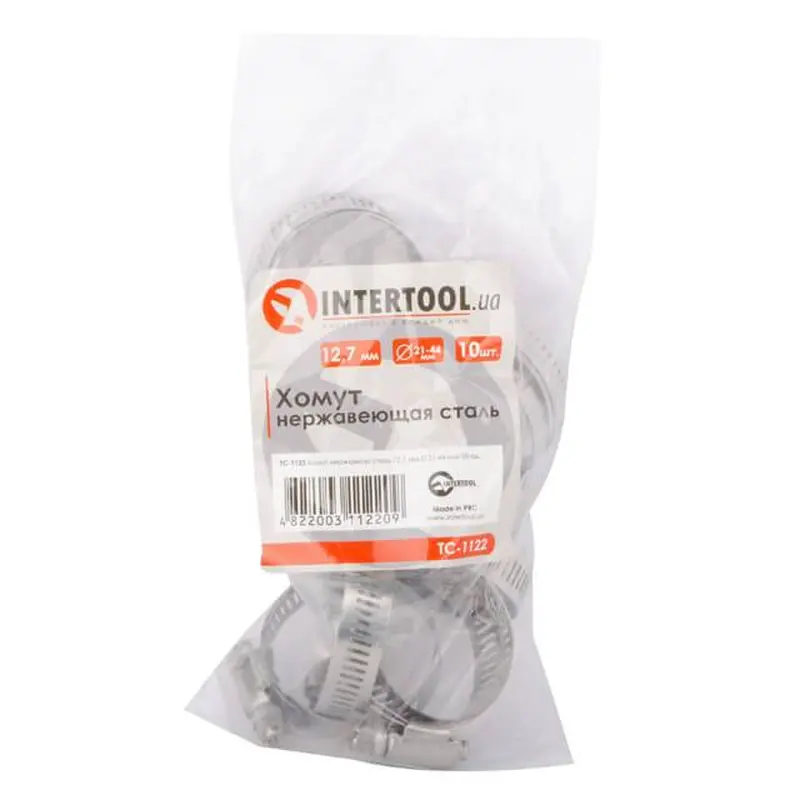 Хомут нержавіюча сталь 12,7 мм, D - 21-44 мм INTERTOOL TC-1122