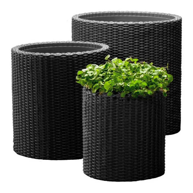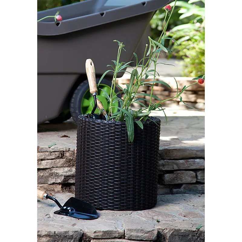 Циліндричний горщик під штучний ротанг - це відмінне доповнення до будь-якого комплекту меблів виробництва групи компаній KETER. Горщик може використовуватися як на вулиці, так і в приміщенні. Для цього передбачена дренажна пробка.