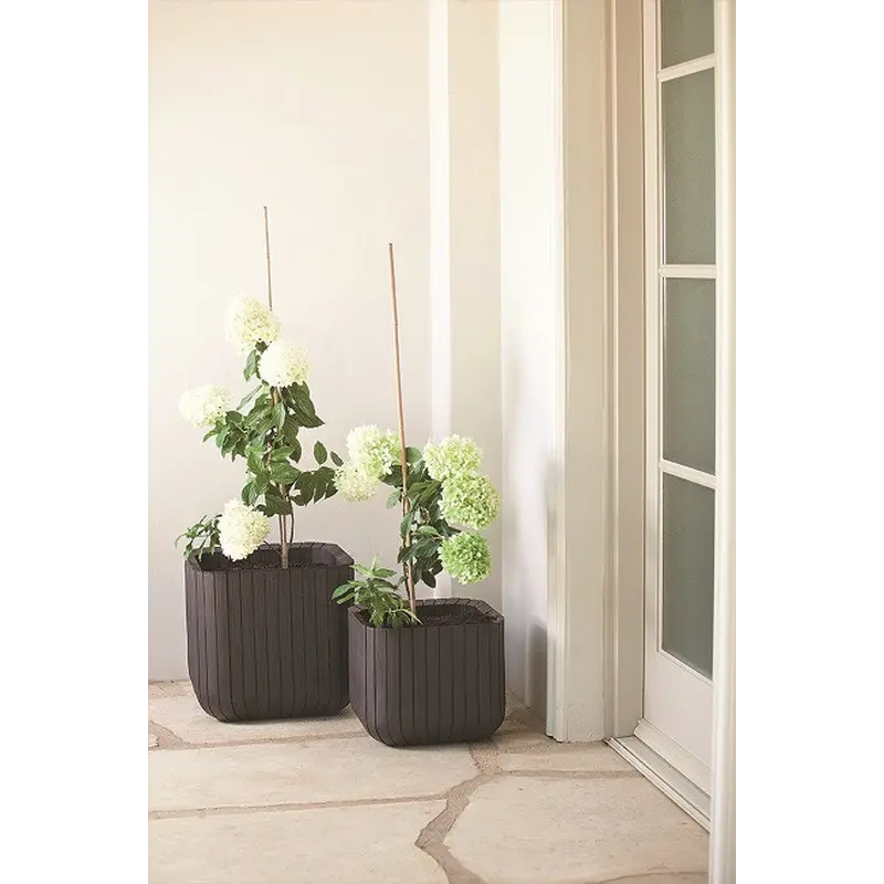 LARGE CUBE PLANTER - це горщик, поєднує в собі сучасний дизайн і традиційну функціональність. Спеціально спроектована фактура поверхні ідеально імітує натуральний малюнок деревини. Завдяки класичній кольоровій гамі і цікавій формі вазон підійде для оформлення будь-якого саду, незалежно від раніше застосованої в ньому стилістичної концепції. Завдяки використанню високоякісних матеріалів, вазон одночасно є стійким до впливу атмосферних факторів.