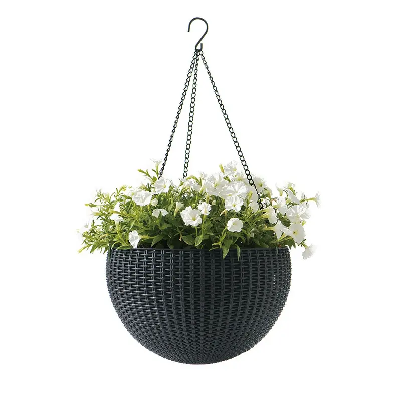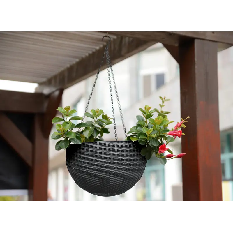 Горщик для рослин Keter Rattan hanging sphere з ланцюжками підвісний, антрацит, 8,6 л