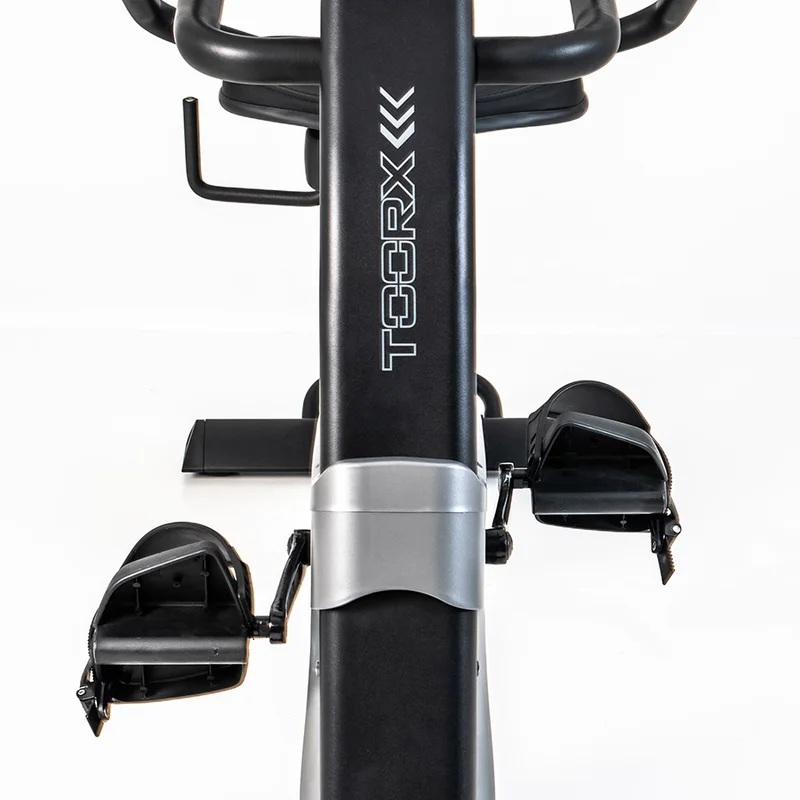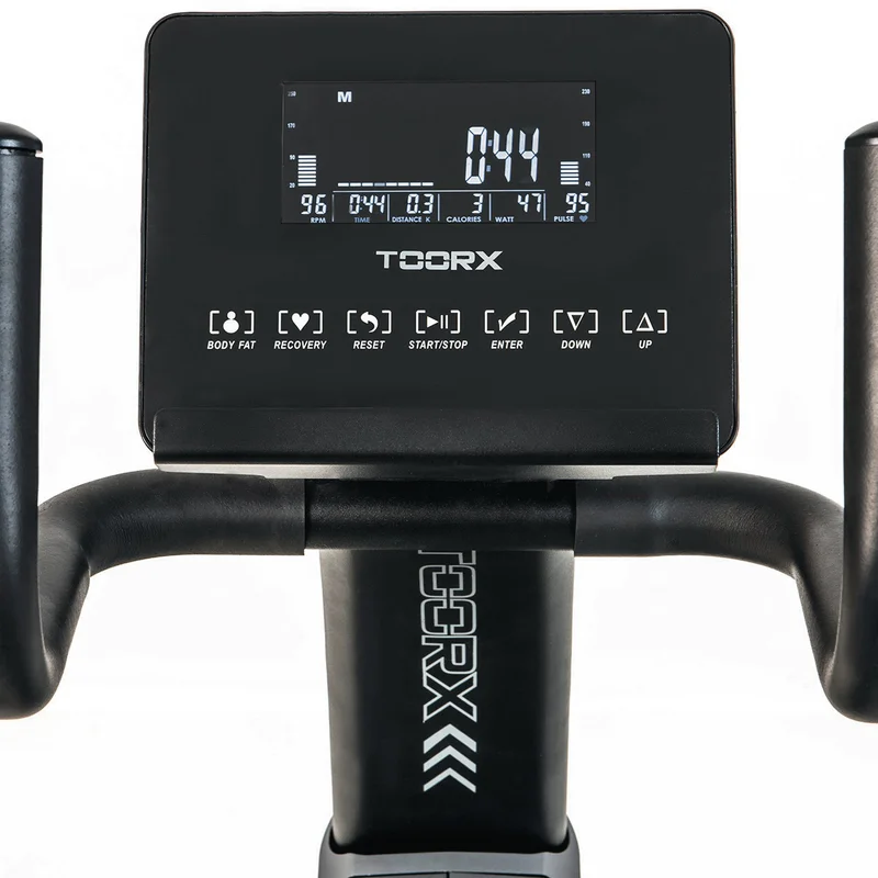 Горизонтальний велоергометр Toorx Recumbent Bike BRXR 3000 (BRX-R3000) із лінійки Light Commercial від італійського виробника Garlando S.p.A. призначений для комфортного кардіотренування як вдома, так і в невеликих фітнес клубах. Велоергометр із індукційною магнітною системою гальмування має 32 рівня навантаження, що регулюються за допомогою сучасного комп'ютера. 16-кілограмовий маховик створює відмінну плавність ходу, знижуючи навантаження на суглоби та мінімізуючи ризик отримання травми в процесі занять. Велоергометр розрахований на вагу до 160 кг і має зручну спинку з можливістю регулювання кута нахилу для більшого комфорту. Вбудований приймач для бездротового датчика вимірювання пульсу буде доречним під час тренування по одній із чотирьох пульсозалежних програм. Консоль тренажера має підставку для смартфона/планшета та підтримує Bluetooth для інтеграції з популярними програмами iConsole+ Training і Kinomap, які перетворять монотонне тренування в захоплюючий процес. Сидіння велоергометра регулюється в горизонтальній площині для індивідуального налаштування, а транспортувальні ролики в передній частині тренажера дозволяють переміщати його по кімнаті за допомогою зручної ручки.