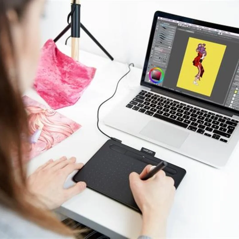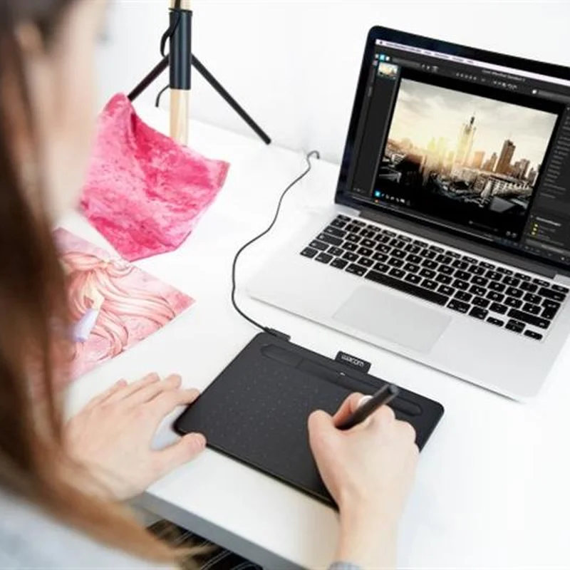 Розкрийте свій творчий потенціал по-новому із Wacom Intuos Графічний планшет Wacom Intuos, оснащений легким надточним цифровим пером і програмним забезпеченням, що завантажується, яке відповідає вашому стилю роботи. Виріб створений для того, щоб втілити ваші найсміливіші ідеї в життя. Де відбувається диво Цифрове малювання та живопис чи редагування фотографій? Яким би не був обраний вами жанр творчості, Wacom Intuos має все необхідне для того, щоб у ньому реалізуватися. Він зручний в налаштуванні та використанні, до того ж пропонує до трьох унікальних додатків, що безкоштовно завантажуються для творчих завдань. Для отримання додаткового програмного забезпечення увійдіть під своїм обліковим записом Wacom ID або створіть його, зареєструвавши свій Intuos. Можливо, потрібно зареєструватися і у постачальників програмного забезпечення. Кількість доступних програм залежить від моделі. Перше, що відчуваєш, – реалістичність відчуттів. 4096 рівнів чутливості пера до натиску та його ергономічний корпус забезпечують високу точність та керованість. Ваше перо таїть у собі силу Перше, що помічаєш, починаючи працювати з пером – це реалістичність відчуттів. Завдяки технології електромагнітного резонансу перо без батарейок має 4096 рівнів чутливості до натискання, забезпечує природне відчуття малювання, яке триває постійно, поки ви з ним працюєте. При цьому ергономічний дизайн і мала вага роблять його зручним у руці, дозволяючи відчувати і точність, і керованість. Налаштовується під користувача Якому б стилю малювання ви не віддали перевагу, пристрій підтримує наконечники-фломастери і гнучкі наконечники для пера, адже всі вони акуратно можуть зберігатися всередині самого пера. Ви також можете налаштувати обидві кнопки пера та чотири клавіші ExpressKeys, розташовані на пристрої, щоб забезпечити максимальну зручність під час свого творчого процесу. У комплект входять 3 стандартні наконечники. Наконечники-фломастери та гнучкі наконечники для пера не входять у комплект. Кожному шедевру потрібна рама Для студії, кабінету, спальні і не тільки – Wacom Intuos доступний у яскравих кольорах, які підійдуть до будь-якого навколишнього простору. На вибір пропонується чорний та фісташковий. Продуманий, компактний та стильний Надтонка та компактна конструкція означає, що Intuos можна легко використовувати будь-де. Але нехай вас не дурить його зовнішній вигляд: він не менш міцний і ефективний, ніж попередні моделі виробника. Планшет має товщину 8.8 мм, що можна порівняти зі стандартним смартфоном.