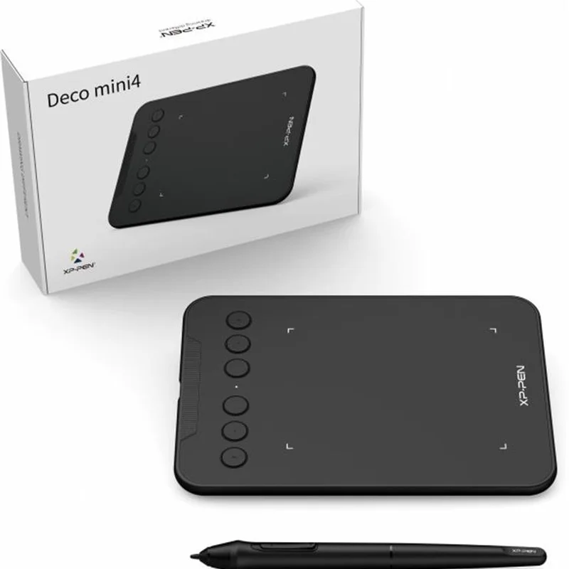 Неймовірно портативний і дуже потужний Насолоджуйтеся високою продуктивністю портативного планшета. Із супердоступним Deco mini4 ви можете зловити натхнення, ваші ідеї завжди з вами. Робота без зупинки Простий у використанні Deco mini4 дає змогу вільно висловлювати свої ідеї. Настройте поєднання гарячих клавіш так, як зручно особисто вам, під ваші особисті переваги. Задовольнити свої творчі потреби Deco mini4 постачається зі стилусом P05D без батареї, який працює довгі години, що дає змогу творити без перерви. Вишукані лінії Маючи до 8192 рівнів чутливості до натискання, стилус створює природні лінії різної ширини, даючи змогу вам із легкістю створювати красиві штрихи. Творіть вільно Deco mini4 — портативний і підтримує з’єднання з пристроями на основі Android (планшетами та смартфонами), що дає змогу вам висловлювати свої думки вільніше. Під’єднуйте свої пристрої легко Deco mini4 обладнаний портом USB-C, що дає змогу під’єднувати його безпосередньо до вашого iMac, MacBook Pro або комп’ютера на основі ОС Windows. Сумісність XP-Pen Deco mini4 сумісний з ОС Windows 10/8/7, Mac OS X 10.10 (і вище), Android 6.0 (і вище) і Chrome. Планшет також працює з основним програмним забезпеченням, включно з Photoshop, SAI, Painter, Illustrator, Clip Studio, GIMP, Medibang, Krita, Fire Alpaca і Blender 3D.