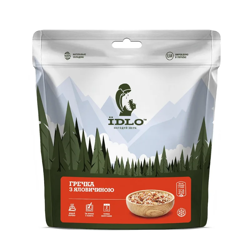 Уяви, що перед тобою велика порція ароматної гречки. В її аромат м'яко додається запах м'яса. Ти пробуєш і з кожною новою ложкою тобі хочеться ще, поки не побачиш дно тарілки. Все, ти ситий і задоволений. А тепер прибираємо з уяви тарілку, телепортуємо себе в затишний намет посеред гір. Ранок, прохолода, але руки приємно зігріває термопакет з цією ж кашею. Смак той же, а відчуття в сотню, немає, в тисячу разів яскравіше. Харчування в поході стало досконалим! Гречана каша зі справжнім м'ясом-незмінний атрибут гірських походів. Можна сказати-улюблена туристична їжа. Впізнається з першої ж ложки.