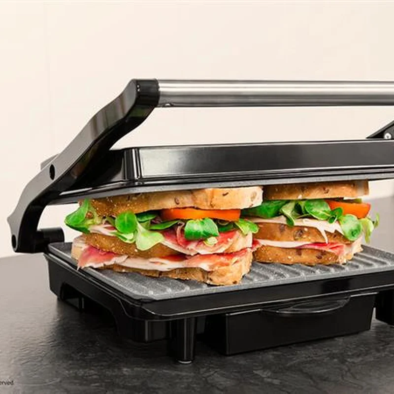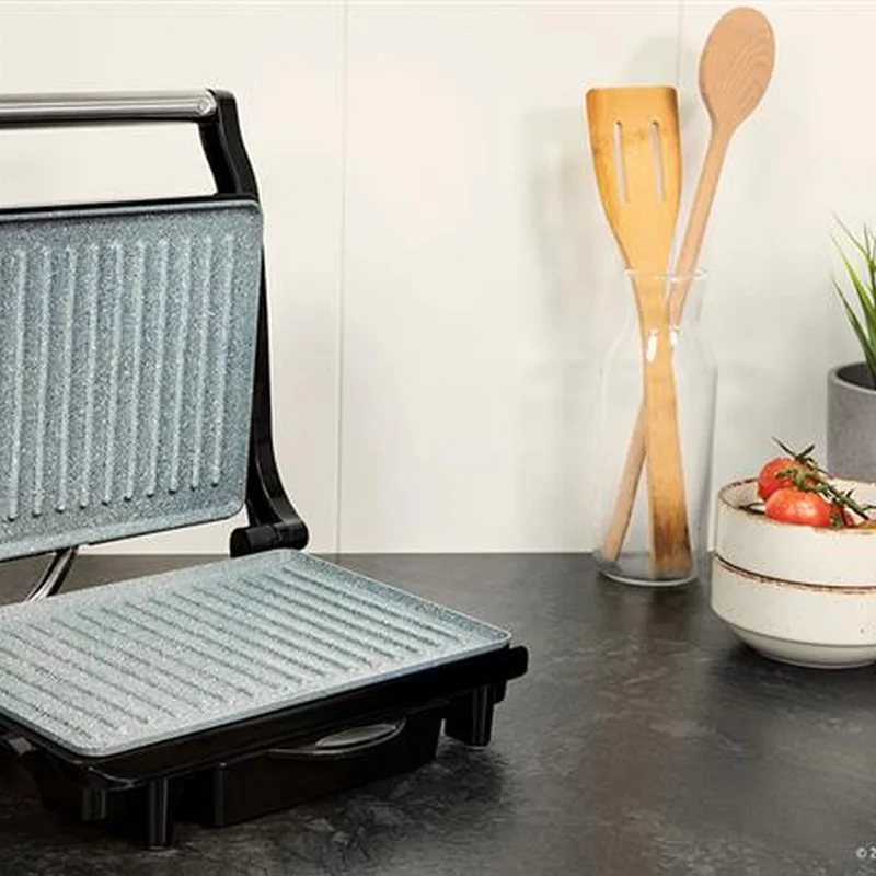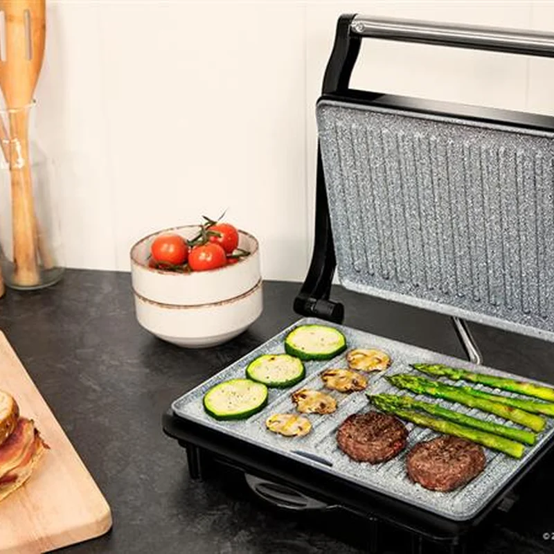 Гриль електричний CECOTEC Rock"nGrill 1500 Rapid Приготуйте гамбургери, розігрійте бутерброди або зробіть тости на сніданок з новим грилем Rock"nGrill потужністю 1500 Вт, який швидко нагрівається і відмінно прожарює! Антипригарне покриття RockStone відмінно підійде для самих різних блюд, воно не завдає шкоди навколишньому середовищу і людині, оскільки не утворює шкідливих токсинів PFOA і PTFE під час нагрівання і розкладання. Контейнер для жиру Контейнер для жиру робить використання гриля дуже зручним. Плаваюча кришка Контактні грилі з плаваючою кришкою комфортніші у використанні, так як верхня пластина адаптується по висоті до будь-якої товщини страви для рівномірного приготування. Широка поверхня Поверхня шириною 24,5x17,3 см дозволить готувати будь-які страви. Вона вміщує кілька гамбургерів, бутерброди, тости і т.д. Швидкий нагрів Завдяки своїй потужності, гриль розподіляє тепло по всій поверхні оптимальним, швидким і рівномірним способом, щоб приготувати страви в найкоротші терміни.