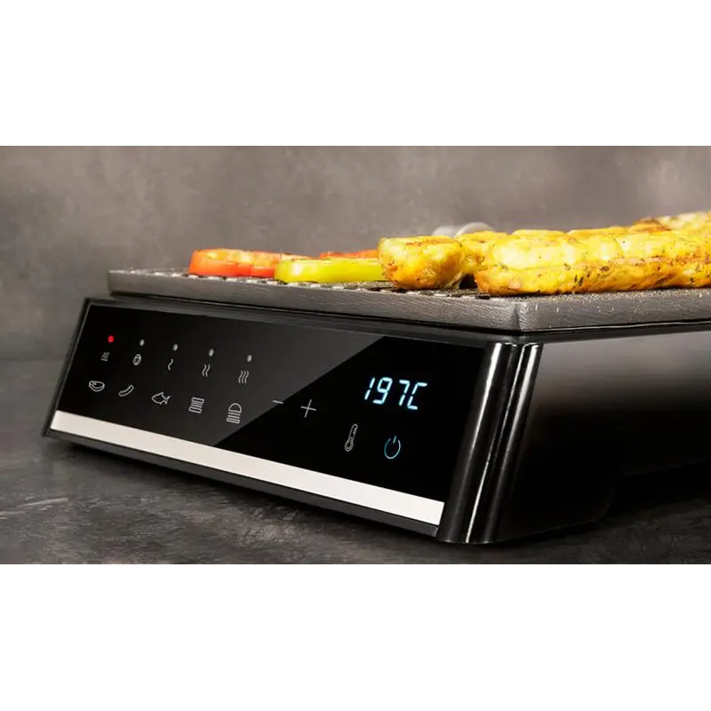 Запах і смак продуктів, приготованих на електричному грилі CECOTEC Rock"nGrill Smart, більш насичений і цікавий. З його допомогою ви можете готувати різноманітні страви - млинці, м"ясо, пироги, гарячі закуски, страви з птахів і риби. Модель потужністю 2000 Вт краще і швидше справляється з цим м"ясом. Використання електричного гриля при смаженні м"ясних страв дозволяє отримати потрібну ступінь прожарювання: Рар, медіум Рар, велл дан. Завдяки своїм функціям він може легко адаптуватися до кожного типу їжі. Використовуйте весь гриль з можливістю відкриття на 180 °. Ідеально підходить для продуктів незвичайної форми: сендвічів, стейків і бургерів. Система AutoCook Тепер не потрібно контролювати процес приготування. Система AutoCook автоматично регулює температуру і час для готовності продуктів. Ви можете запрограмувати AutoCook таким чином, щоб страва була готова до певного часу. Готуйте без масла Антипригарне покриття RockStone забезпечує найвищий ступінь обсмаження. Воно має високу міцність, не містить шкідливих речовин і при нагріванні не виділяє шкідливих токсинів PFOA і PTFE. Зберігає бездоганний смак і корисні властивості продуктів. Під час готування не потрібно додавати масло. Гриль CECOTEC Rock"nGrill Smart підійде людям, які дотримуються правильного харчування. Продукти не прилипають і не пригоряють, а після використання гриль можна легко очистити. Готуйте відразу кілька різних страв Завдяки потужності 2000 Вт гриль CECOTEC Rock"nGrill швидко нагрівається і гарантує ідеальне прожарювання. Ви можете приготувати не прісні страви з "ароматом багаття", навіть не виїжджаючи з квартири. Готуйте одночасно відразу кілька страв на великий робочій поверхні з антипригарним покриттям. Це істотно скорочує час готування, тому ви швидко впораєтеся зі справами на кухні. ви можете вручну регулювати температуру в діапазоні від 150 до 230 ° C. за допомогою різних функцій встановлюйте оптимальний режим для різних типів продуктів. Простота догляду Гриль електричний CECOTEC Rock"nGrill Smart оснащений піддоном для збору жиру для максимально простого очищення після роботи. Робоча поверхня гриля розділена на 2 ребристі знімні пластини для смаження. Їх можна мити в посудомийній машині, що ще більше спрощує очищення після кожного використання.