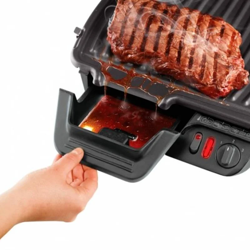 Неповторний аромат і дивовижний смак - ось, за що так люблять гриль-страви. Щоб насолодитися смачним стейком, необов'язково йти в ресторан або їхати на дачу. Отримати ідеальне прожарювання можна і в міській квартирі, якщо під руками є електрогриль Tefal. Покупці, які вже встигли приготувати м'ясо, рибу або овочі за допомогою Tefal GC305012, залишають багато позитивних відгуків про свого нового кухонного помічника. Контактний гриль GC305012 - це компактний функціональний прилад у міцному сталевому корпусі. Розібратися з його механічним управлінням просто: конструкція передбачає регулювання температурних режимів і робочих пластин. Використовуючи гриль-барбекю, ви зможете урізноманітнити домашнє меню, балуючи домочадців і гостей соковитими шашликами, запеченими овочами, різноманітними тостами і паніні. При цьому і приготування, і подальший догляд за пристроєм займають зовсім небагато часу. Після готування знімні пластини і піддон для жиру можна очистити в посудомийній машині. Настільний гриль електричний від Tefal стабільно займає високі позиції в ТОП рейтингах кращої кухонної побутової техніки. Це хороший вибір для тих, хто стежить за своїм харчуванням, оскільки прилад дає змогу готувати різні продукти без використання жиру та олії.