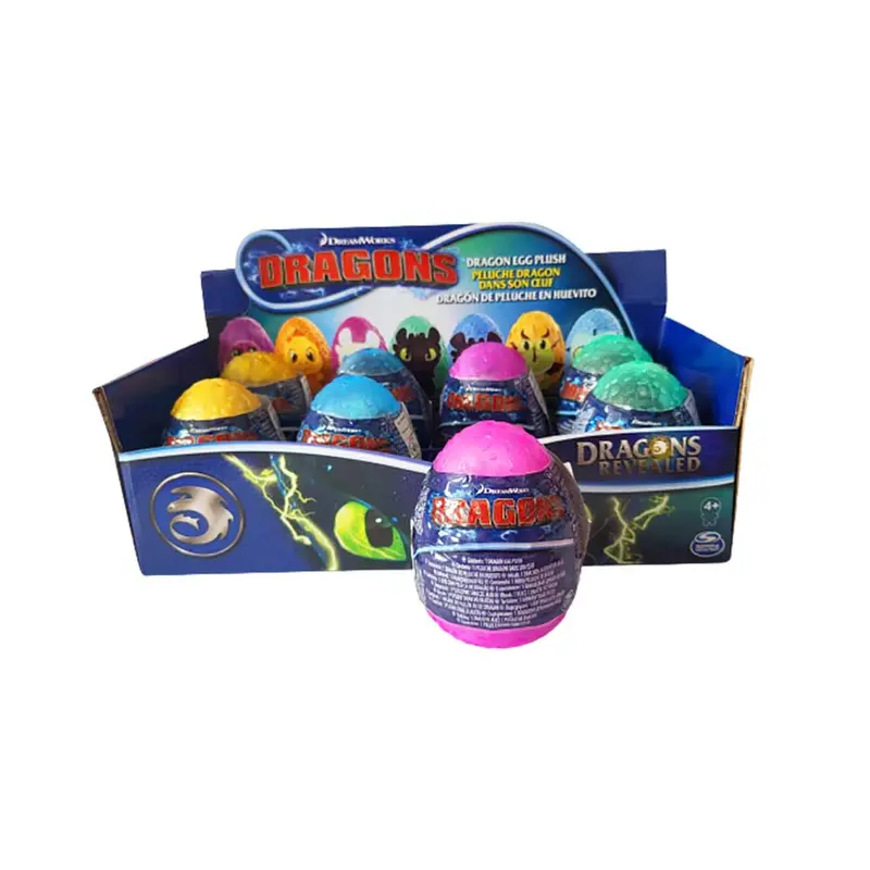 Вилупіть свого власного плюшевого дракона!Ваші улюблені герої з «Як приборкати дракона: Прихований світ» тепер доступні в 8-сантиметровому розмірі.Візьміть до рук барвисте яйце дракона з унікальним малюнком і підніміть його верхню частину, щоб знайти всередині чарівний сюрприз.У кожного дракона великі милі очі та чарівна зовнішність! Ви можете використовувати нижню частину яйця як затишне гніздечко! А розміри дракончика дозволяють його брати скрізь із собою.Розміри виробу ДхШхВ-10 х 15 х 5 сантиметрівРекомендовано для дітей від 3 років