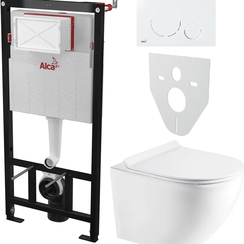 Інсталяція AlcaPlast 4в1 AM101/1120 з білою круглою кнопкою M670 + підвісний унітаз ROUND