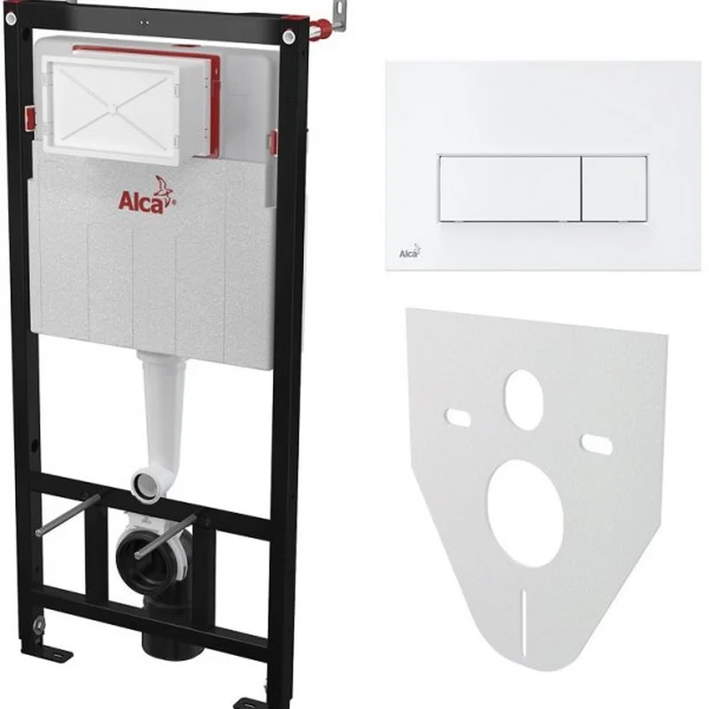 Инсталляция AM101/1120 с панелью смыва M570 и звукоизоляционной прокладкой M91 от компании Alca Plast предназначена для подвешивания унитазов с интервалом крепления 180 мм или 230 мм к гипсокартонновым конструкциям. Модель можно отнести к классу стандартных (универсальных) модулей без дополнительных конструктивных особенностей (таких как: малая высота, малая толщина и т.д). Инсталляция предназначена для сухой установки на заранее подготовленное место, имеющее подвод воды и канализационный отвод.