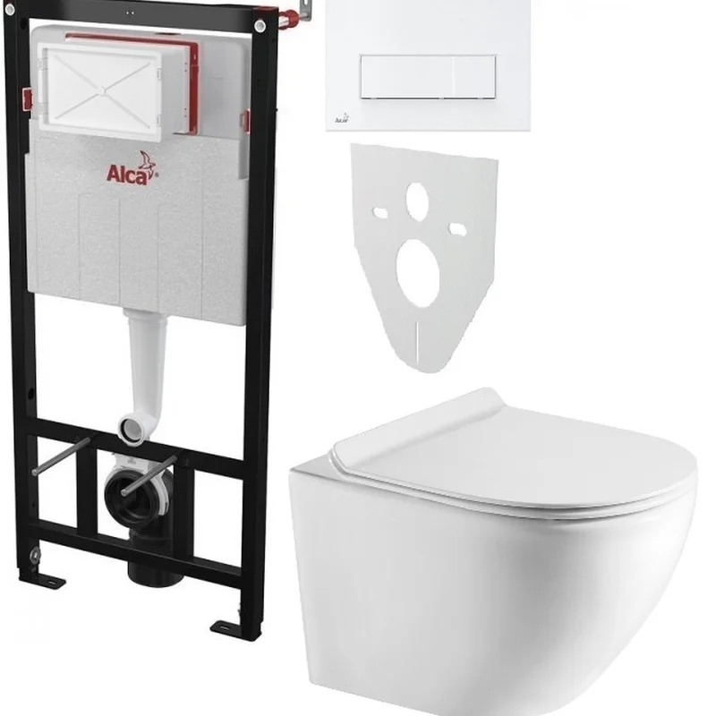Інсталяція AlcaPlast 4в1 AM101/1120 з білою прямокутною кнопкою M570 + підвісний унітаз ROUND SMART