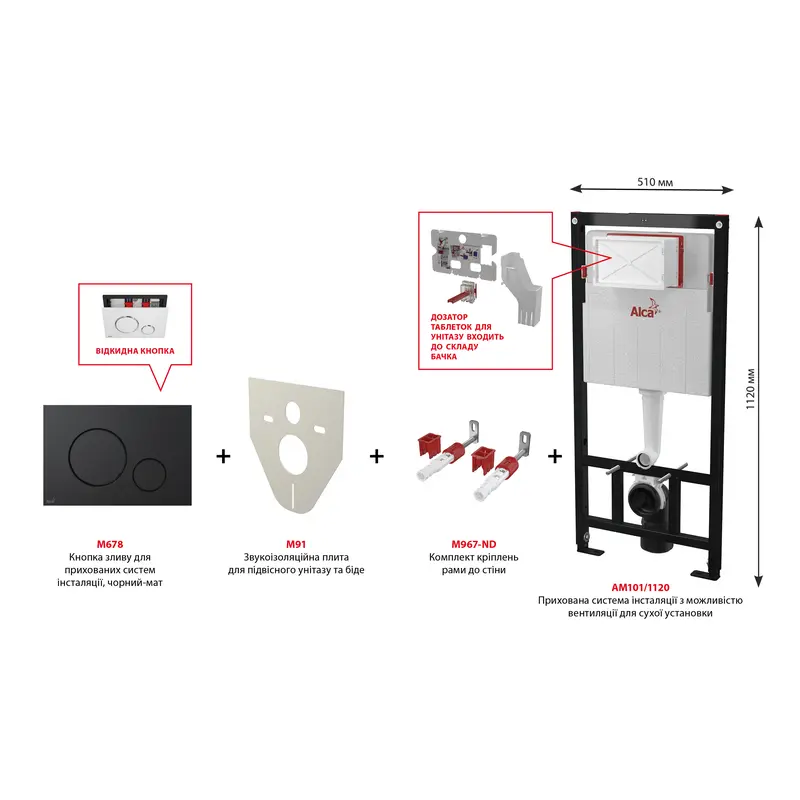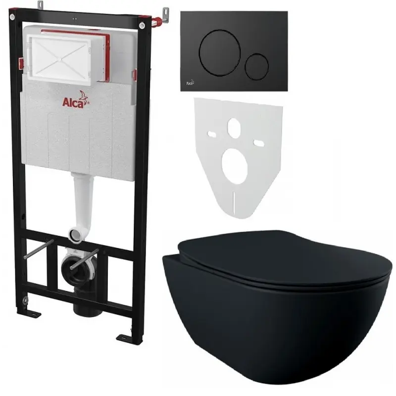 Інсталяція AlcaPlast 4в1 AM101/1120 з чороною матовою круглою кнопкою M678 + підвісний унітаз Free Black matt Rim-off