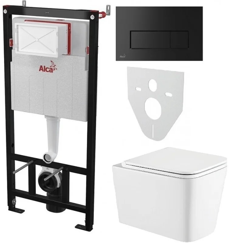 Інсталяція AlcaPlast 4в1 AM101/1120 з чороною матовою прямокутною кнопкою M578 + підвісний унітаз Kvadro