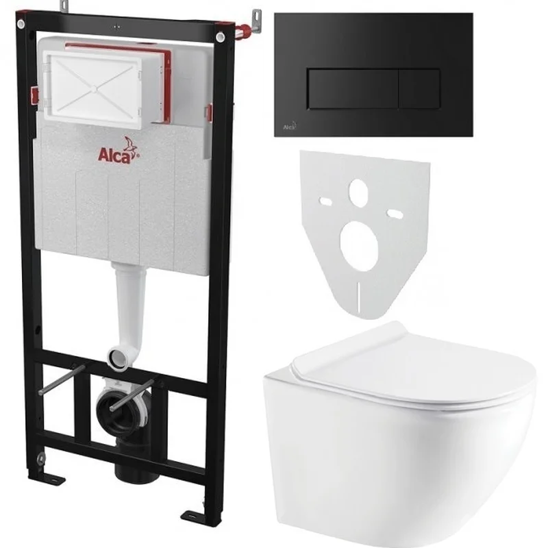 Інсталяція AlcaPlast 4в1 AM101/1120 з чороною матовою прямокутною кнопкою M578 + підвісний унітаз ROUND