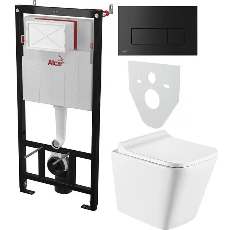 Інсталяція AlcaPlast 4в1 AM101/1120 з чороною матовою прямокутною кнопкою M578 + підвісний унітаз TREND