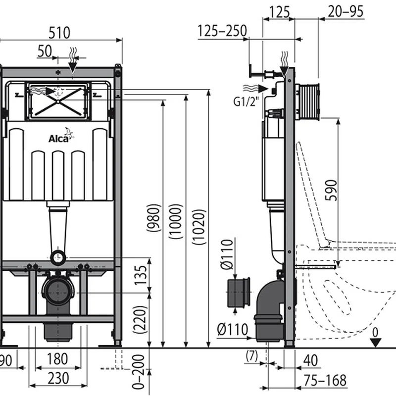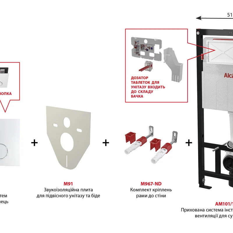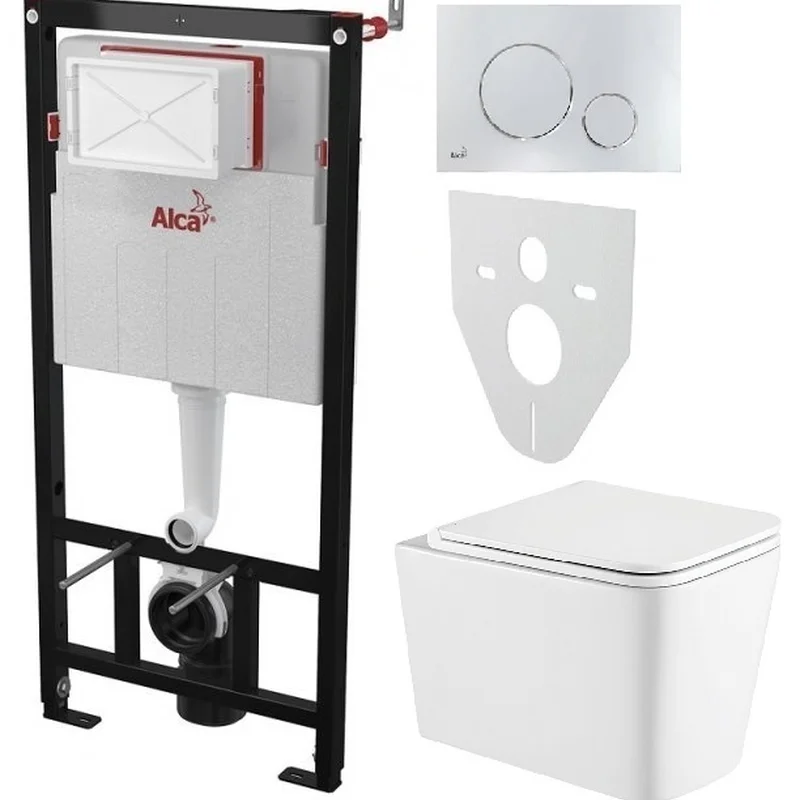 Інсталяція AlcaPlast 4в1 AM101/1120 з хромованою круглою кнопкою M671 + підвісний унітаз Kvadro