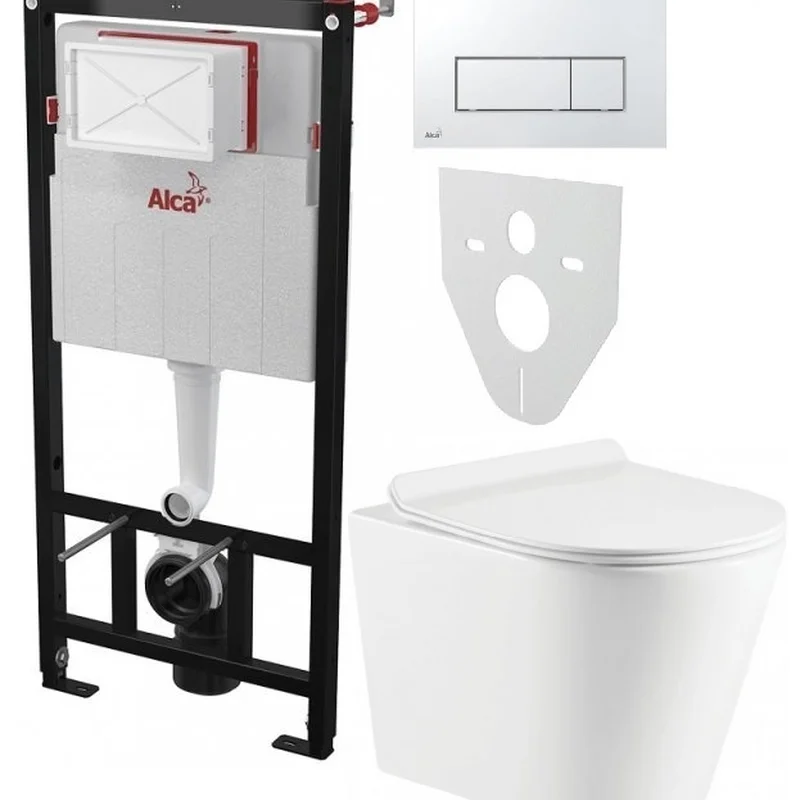 Інсталяція AlcaPlast 4в1 AM101/1120 з хромованою прямокутною кнопкою M571 + підвісний унітаз ORION