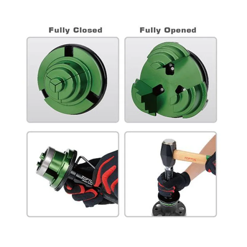 Пристосування для установки підшипників і сальників 18-90мм TOPTUL JEBC1890. Міцна алюмінієва конструкція зі сталевою кришкою. Призначений для установки підшипника і ущільнювача без яких-небудь пошкоджень. 3-х ступінчастий затискач легко настраевымаевый. Замикаючий гвинт для фіксації вказаного положення, завдяки чому можна використовувати однією рукою. Підходить для більшості автомобілів, включаючи мотоцикли.