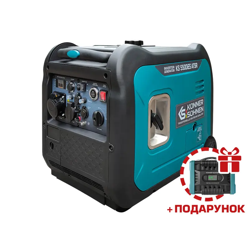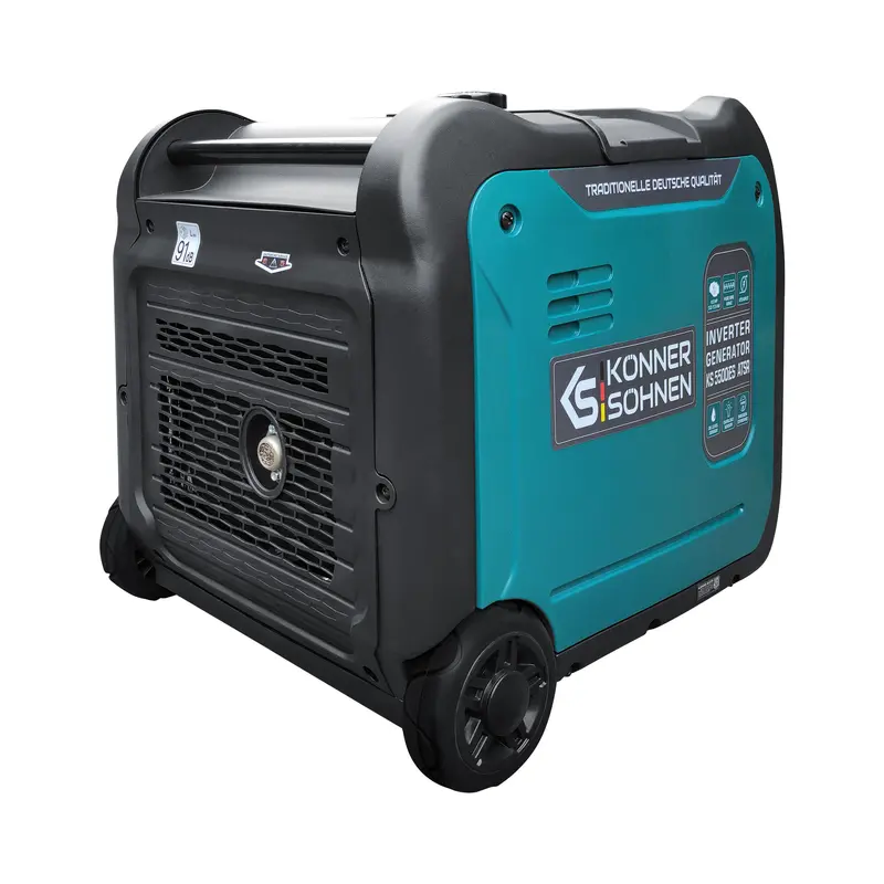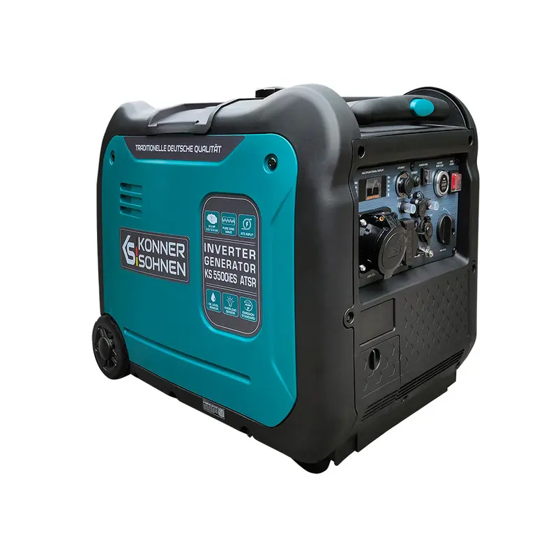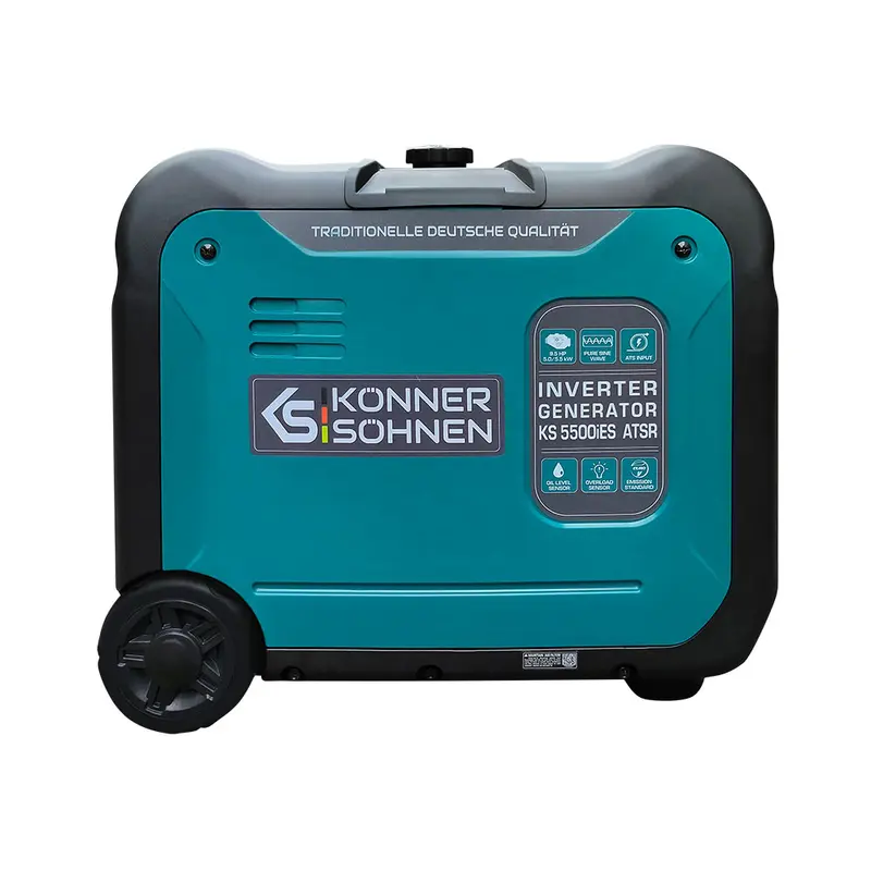 Бензиновий генератор інверторного типу KS 5500iES ATSR німецької торгової марки Könner&Söhnen в шумозахисному корпусі – це зручне та компактне джерело електроенергії з низьким рівнем шуму. Ключова особливість даної моделі полягає в тому, що вона виробляє електричний струм з правильною синусоїдою.
