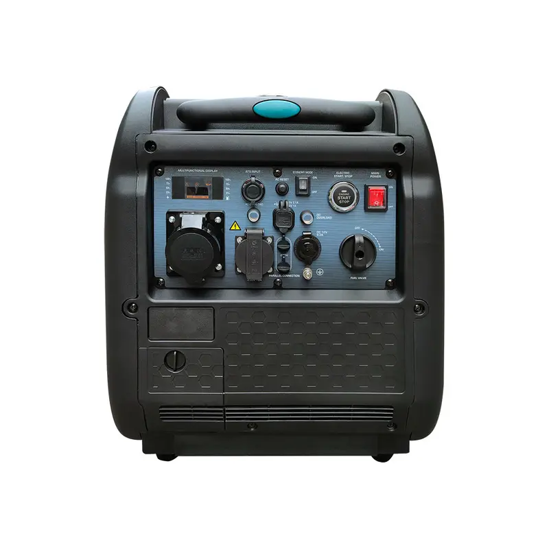 Зручне розташування усіх функцій: багатофункційний LED-дисплей (лічильник мотогодин, вольтаж, частота), індикатори контролю стану генераторної установки, що сигналізують про робочий стан, спрацювання автомату захисту при перевантаженні або короткому замиканні, про низький рівень оливи, кнопка Reset для перезавантаження системи контролю та відновлення подачі напруги, роз’єм для паралельного підключення генераторів, два USB-виходи (5B/1A, 5B/2.1A), розетка 230В та клема заземлення.