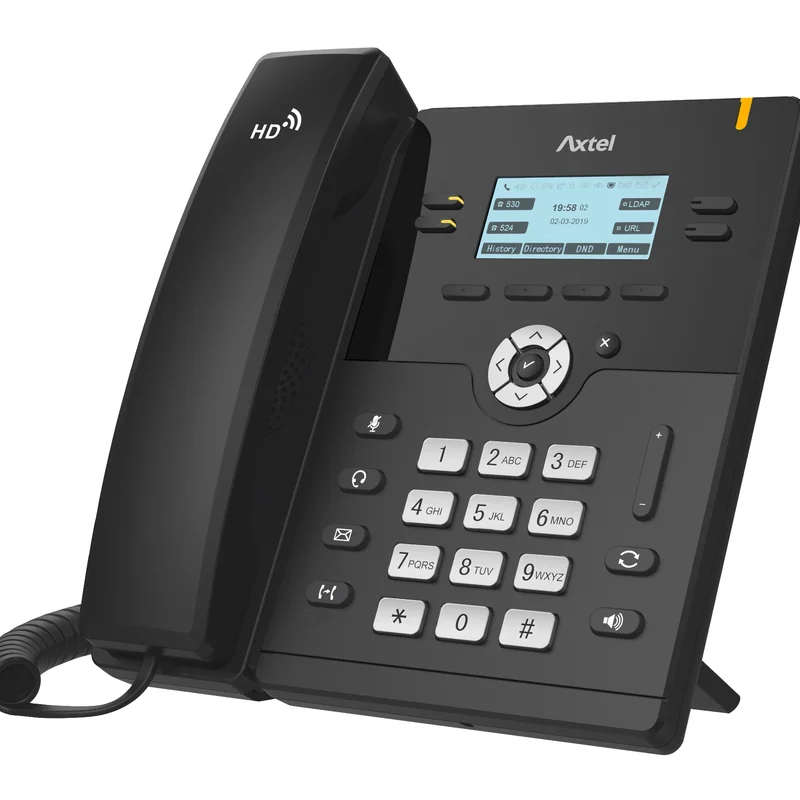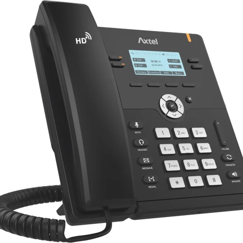 Axtel AX-300G – це простий у використанні сучасний офісний телефон з 4 SIP-аккаунтами, 4 контекстними кнопками та 5-смуговим конференц-зв’язком. Модель оснащена вдосконаленою системою зниження перешкод, що сприяє покращенню зв’язку та підвищенню ефективності роботи.