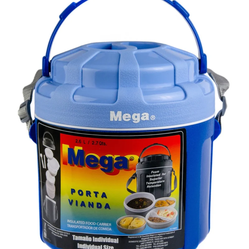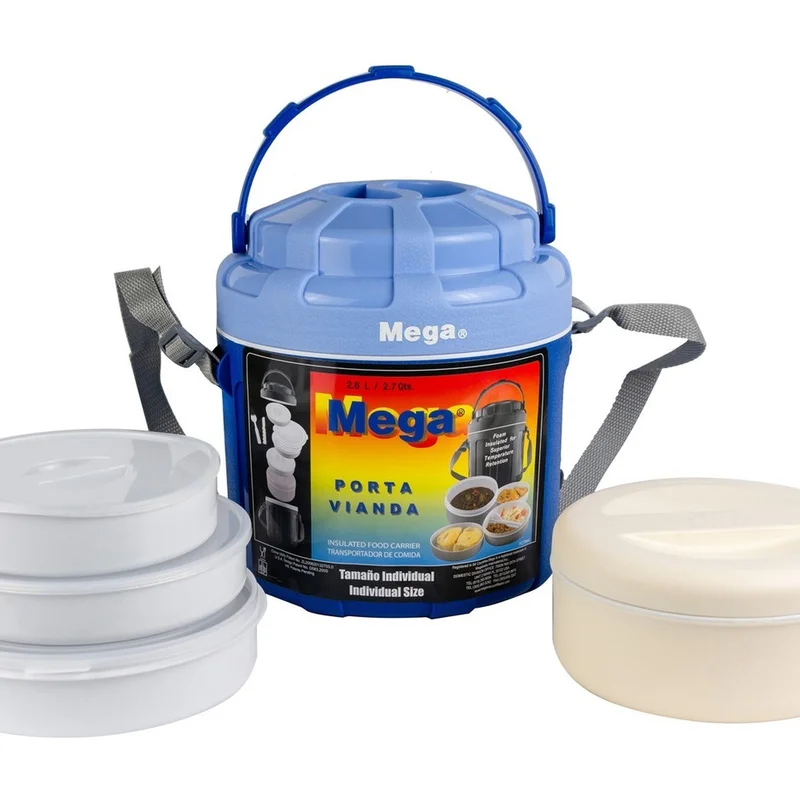 Зручний та місткий Ізотермічний контейнер Mega, 2,6 л у привабливих синіх відтінках виконаний із якісного пластику з внутрішнім шаром термоізоляційної піни.