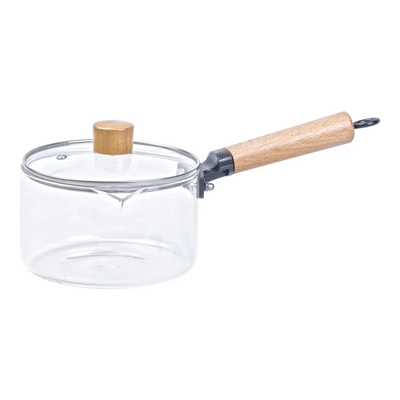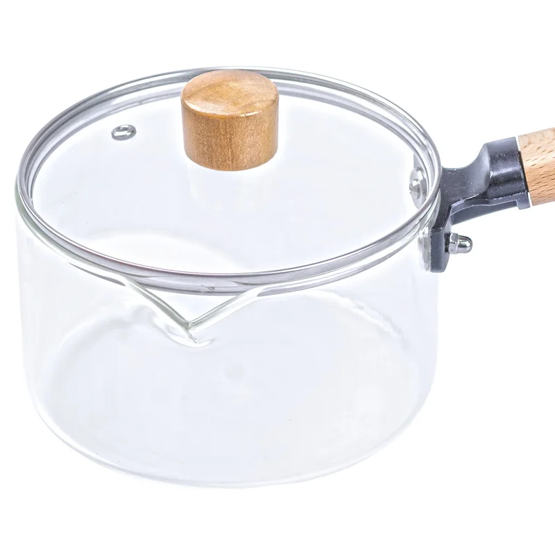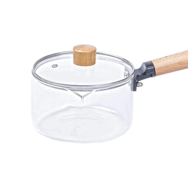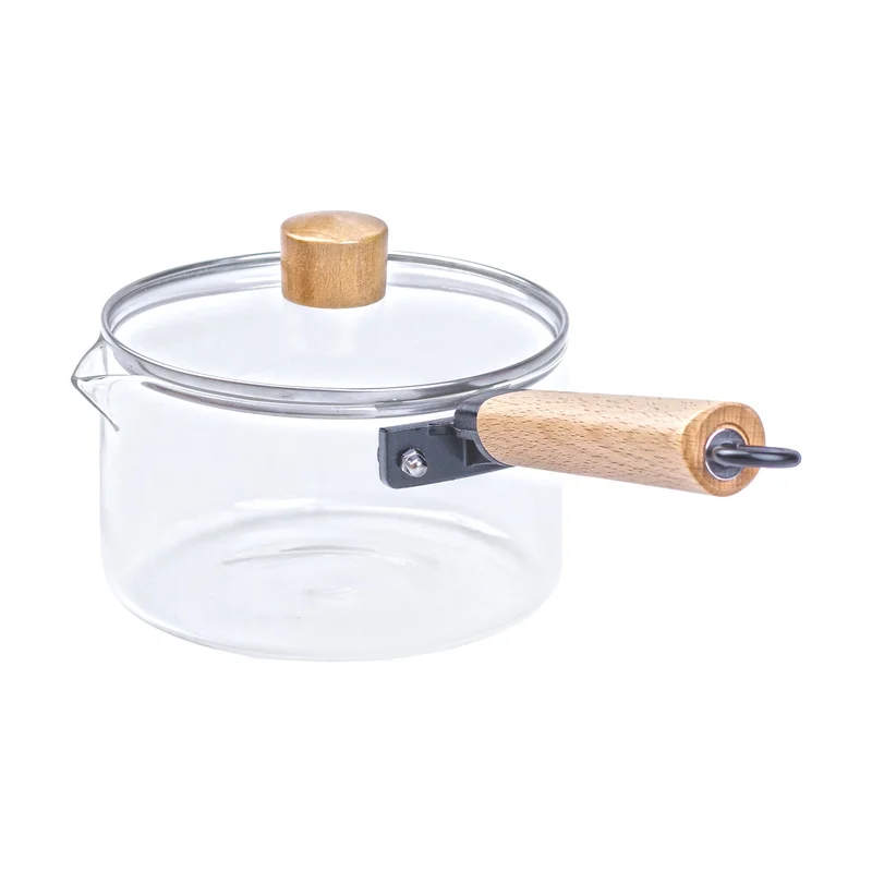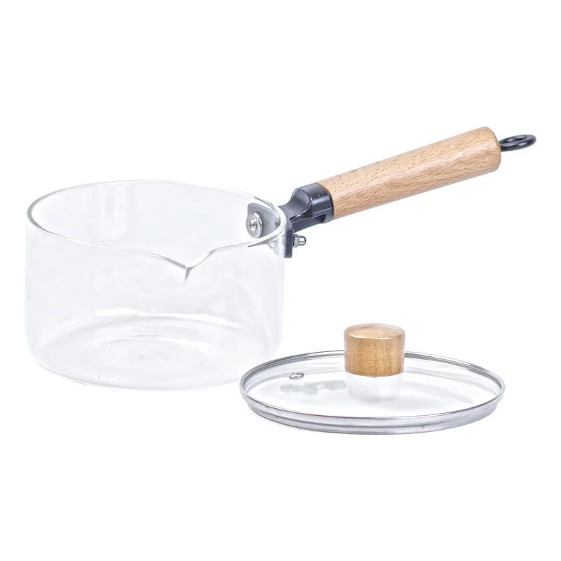 Ківш прозорий скляний з дерев’яною ручкою 1 літр