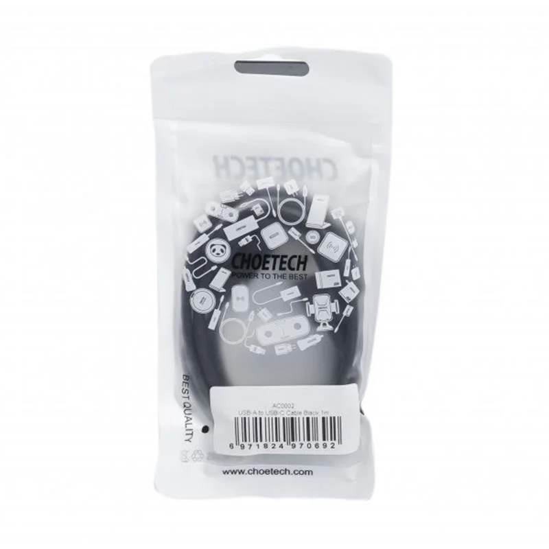 Кабель Choetech USB - USB Type-C (M/M), 1 м, Black (AC0002)