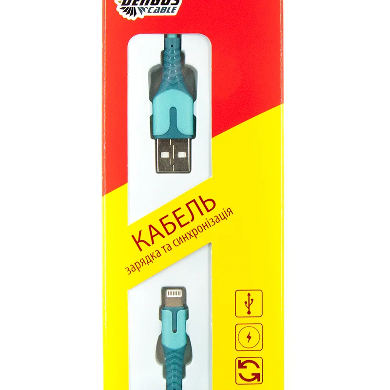 Кабель заряду та синхронізації з роз'ємом Lightning. Про заряд Вашого пристрою підкаже LED-індикатор кабелю, а зовнішнє покриття яскравих кольорів робить ваш пристрій неповторним та помітним. Високоякісний кабель DENGOS для підключення та синхронізації вашого мобільного пристроюз комп’ютером, ноутбуком, планшетом. Призначений для передачі даних та дозволяє заряджати ваш пристрій через роз’єм USB комп’ютера. Використовується також для заряду акумулятора за допомогою мережевого зарядного пристрою. Кабель з зовнішнім пластиковим покриттям приємний на дотик, має яскравий вид та стійкий до пошкоджень, що значно подовжує строк експлуатації даного аксесуару.