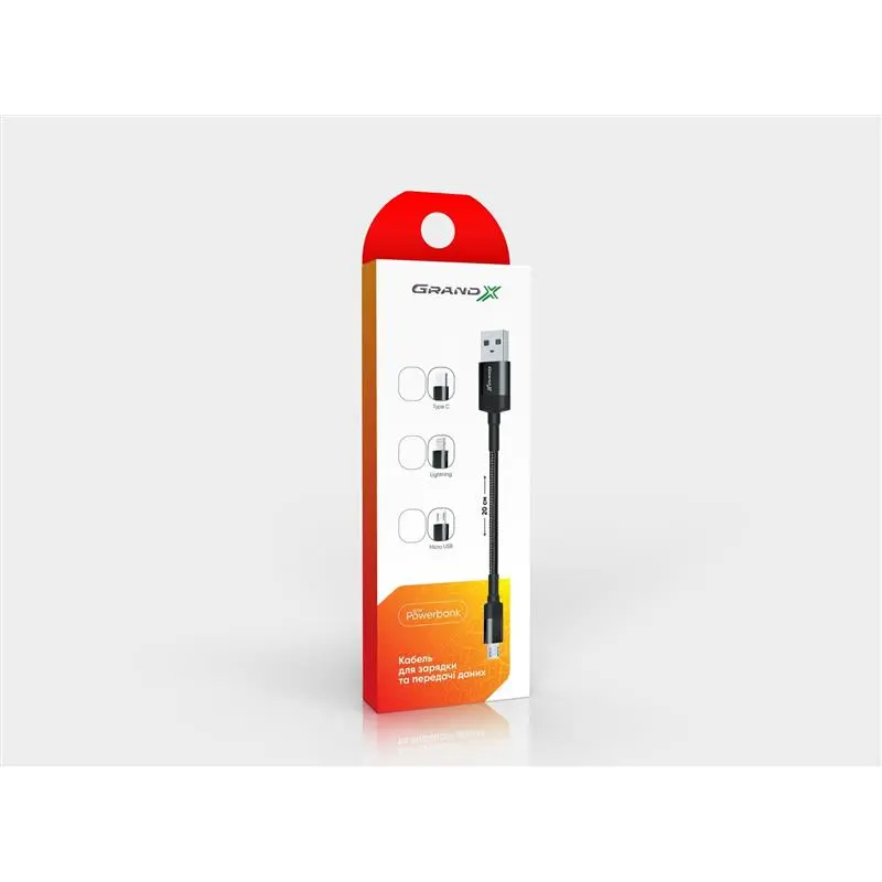 Кабель Grand-X USB - micro USB (M/M), Cu, Power Bank, 0.2 м, Black (FM-20M)