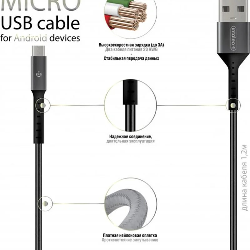 Кабель Intaleo CB0 USB - micro USB (M/M), 1.2 м, Black/Grey (1283126495649)