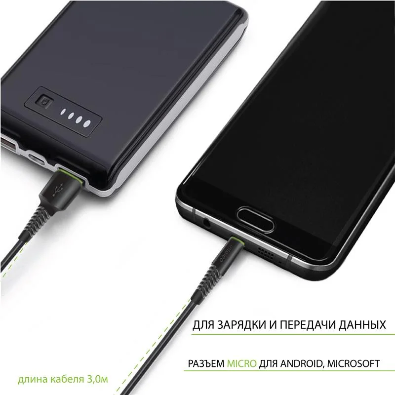 Кабель Intaleo CBFLEXM3 USB - micro USB (M/M), 3 м, Black (1283126487491)