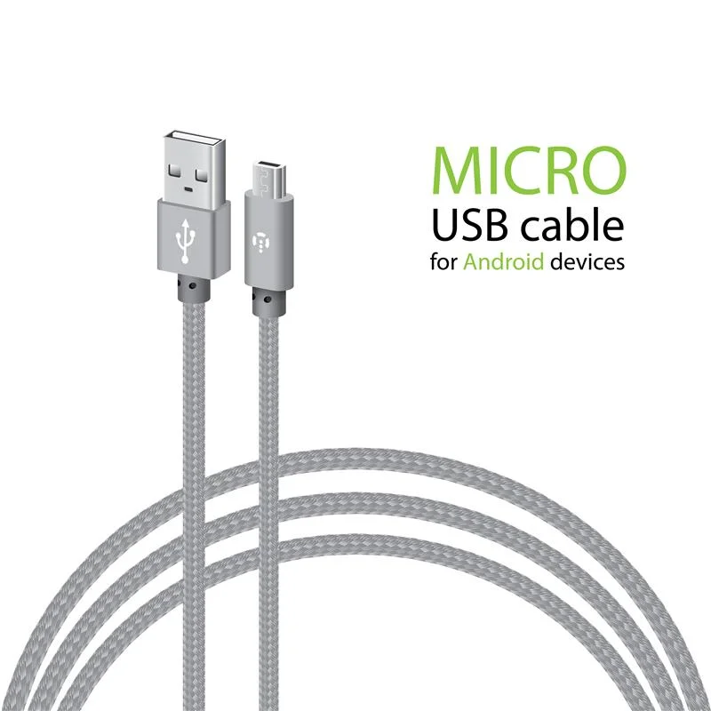 Практичність і безпека Зносостійке нейлонове обплетення протистоїть заплутуванню кабелю і підвищує його довговічність. Стильний дизайн Завдяки матовій металевій обробці і плетеній оболонці, цей кабель має сучасний зовнішній вигляд, який відмінно поєднується з дизайном сучасних мобільних пристроїв. Сумісність Сумісний з усіма пристроями, обладнаними Micro USB роз"ємом, і в більшості випадків вам не доведеться знімати чохол для підзарядки пристрою. Високоякісна мідь Забезпечує високу якість сигналу протягом усього терміну служби кабелю. Надійна ізоляція Всі внутрішні елементи кабелю ізольовані зносостійким матеріалом.