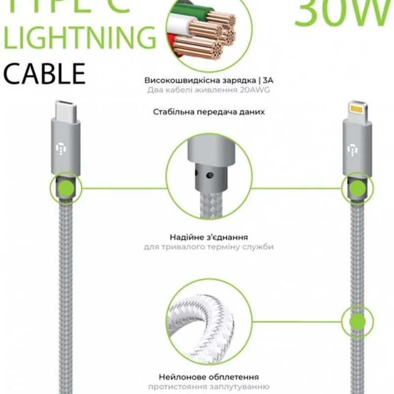 Кабель синхронізації Intaleo CBGNYTL1 30W Type-C до Lightning 1м (сірий). Універсальний зарядний кабель для мобільних телефонів та планшетів.