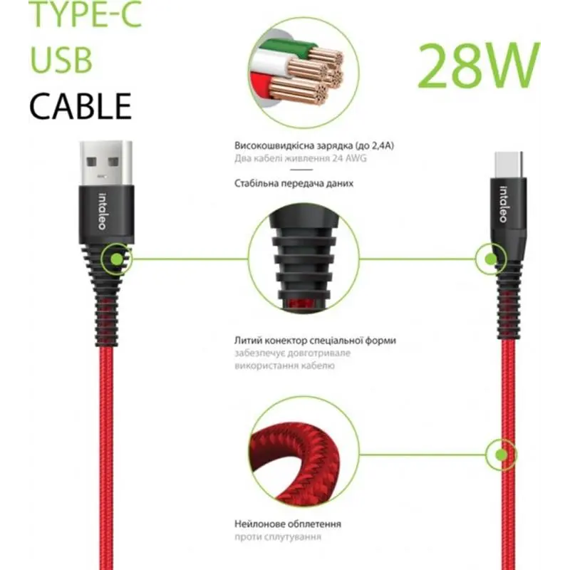 Кабель Intaleo CBRNYT1 USB - USB Type-C (M/M), 1.2 м, Red (1283126559464)