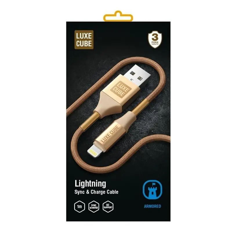 Кабель Luxe Cube Armored USB - Lightning (M/M), 1 м, золотистий (8886668670012)