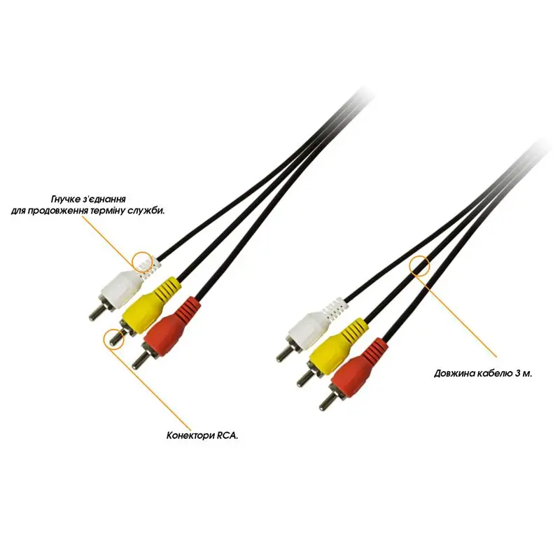 Кабель Piko зі стерео штекерами 3xRCA — 3xRCA (тюльпани). Слугує для передавання аудіо- та відеосигналів між сумісними пристроями.